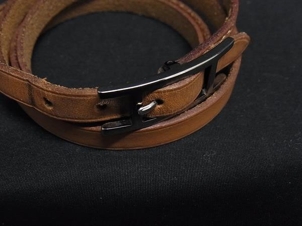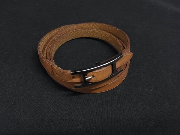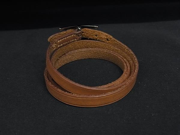 1円 HERMES エルメス アピ3 レザー シルバー金具 3連 ブレスレット アクセサリー メンズ レディース ブラウン系 FU7691