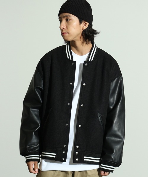 参考商品名:メルトン シンセティックレザースリーブ 切替 スタジャン