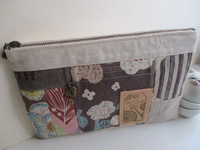 ハンドメイド * ちょっと大きめ 通帳ポーチ * 綿麻 等 いろいろ * パッチ :11 : ♪