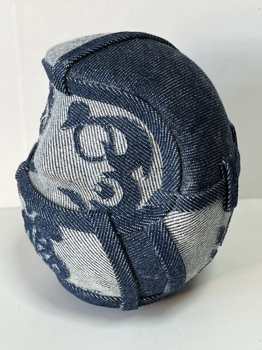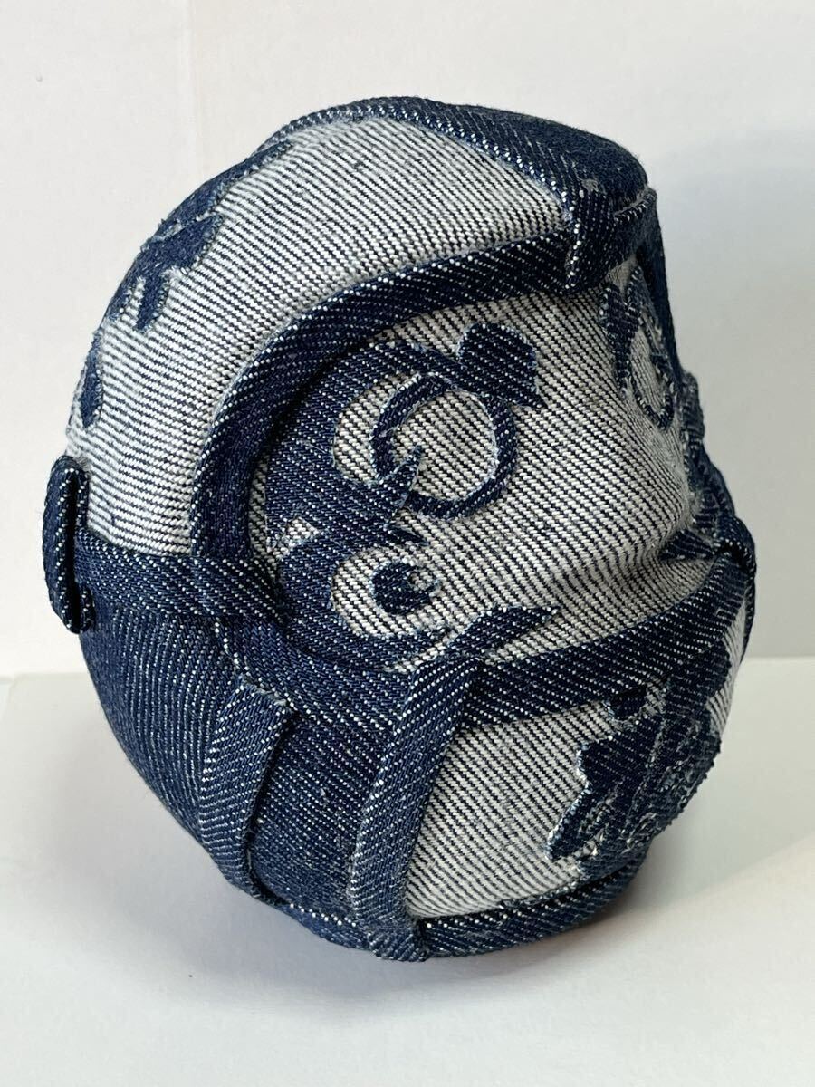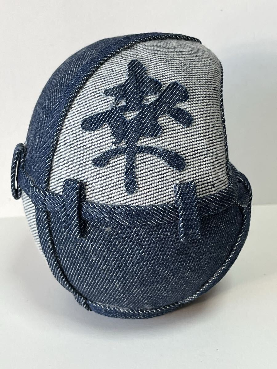 高崎だるまにデニムを貼り、独自の物を制作しました。