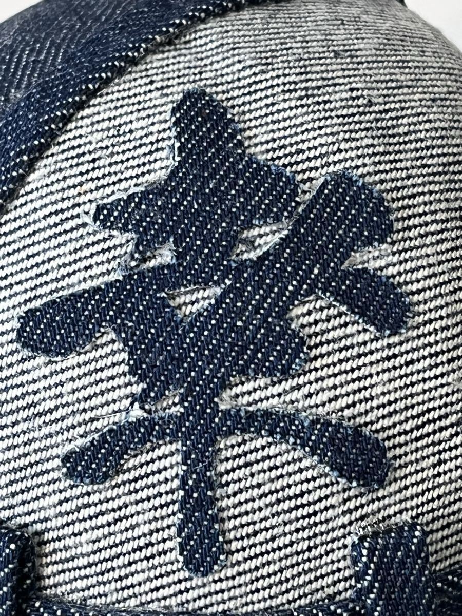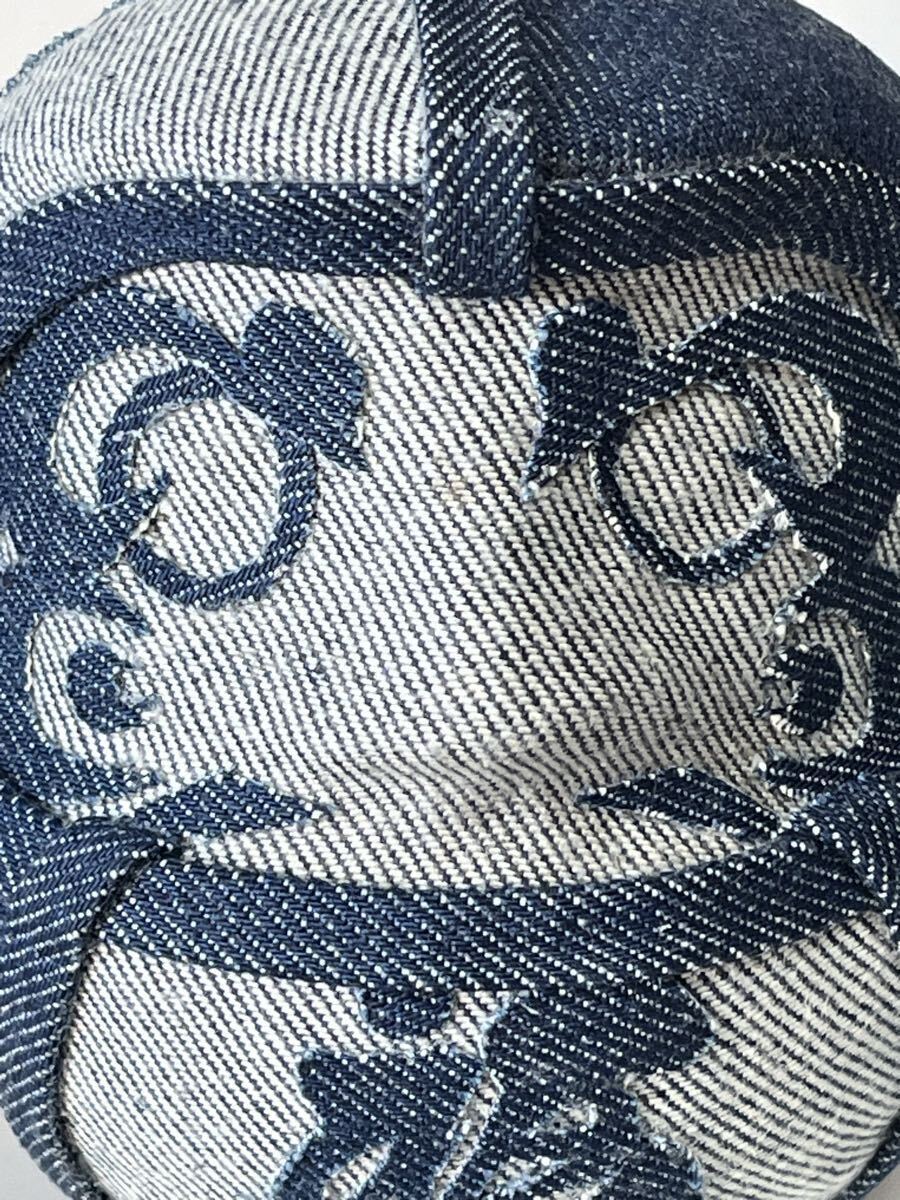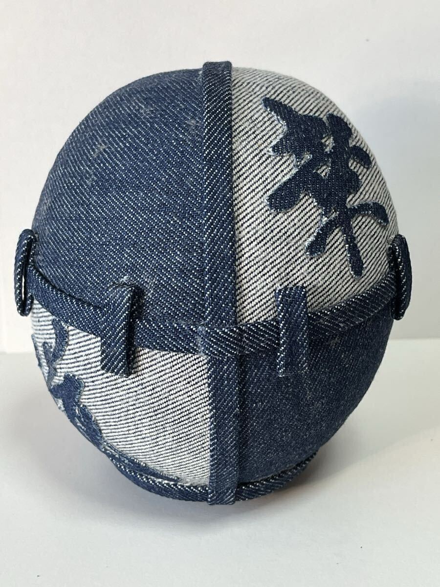 高崎だるまにデニムを貼り、独自の物を制作しました。