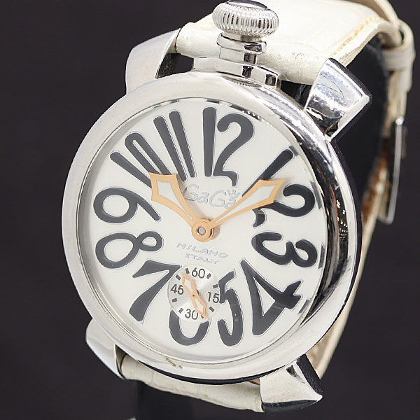 1円 稼働 ガガミラノ マヌアーレ 48mm 32617 手巻 シルバー文字盤 メンズ腕時計 1397000 11KHT SMZ