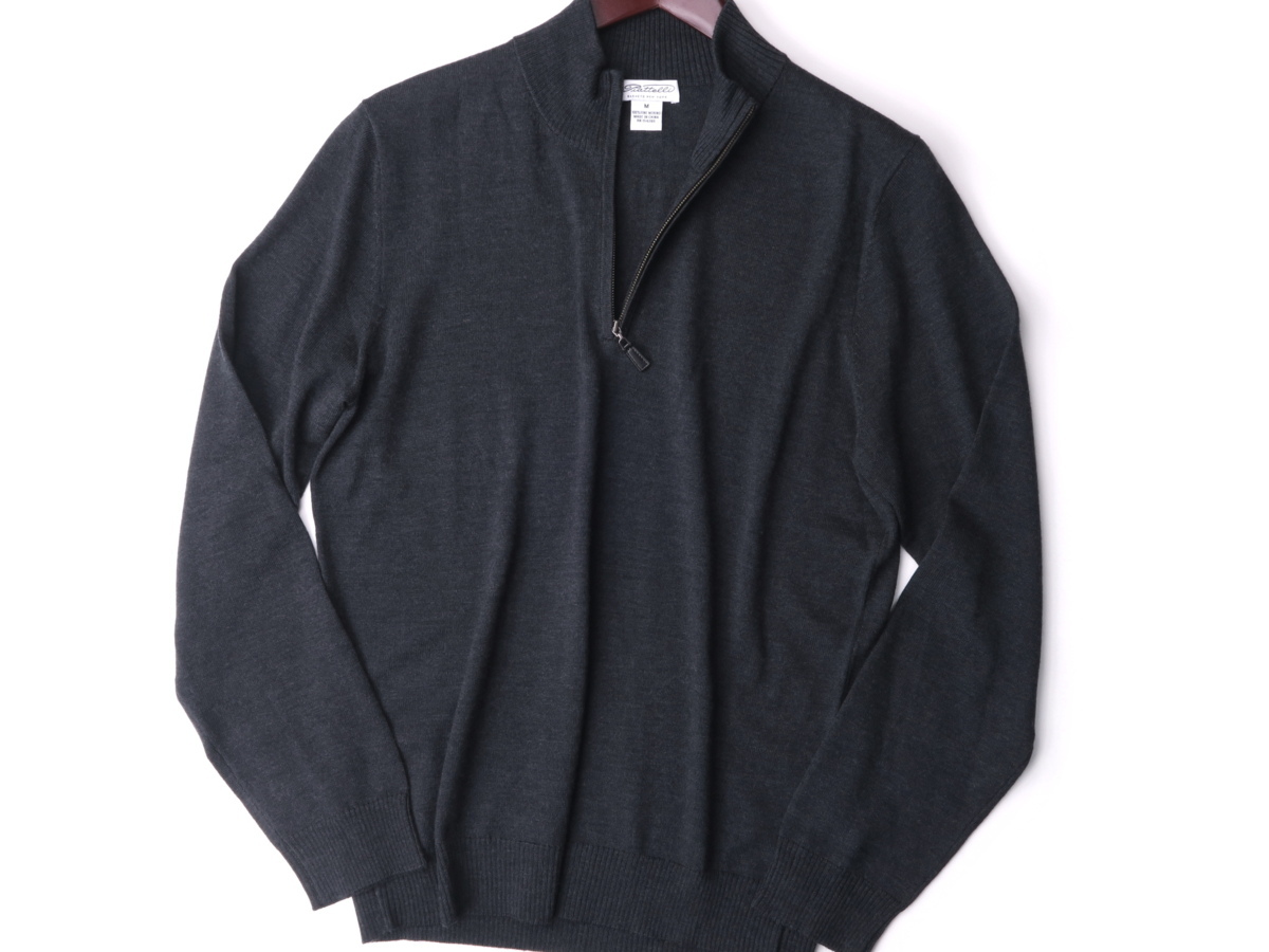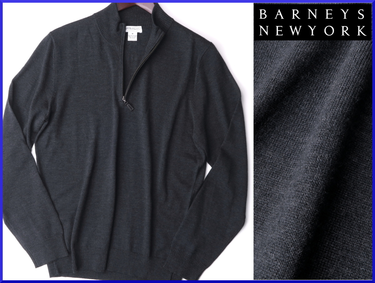 3,9万新品本物バーニーズニューヨークBARNEYS NY伊製生地!!別注【滑らか◎メリノウール100%】ハーフZIPニットセーター/メンズ/濃灰US:M=L
