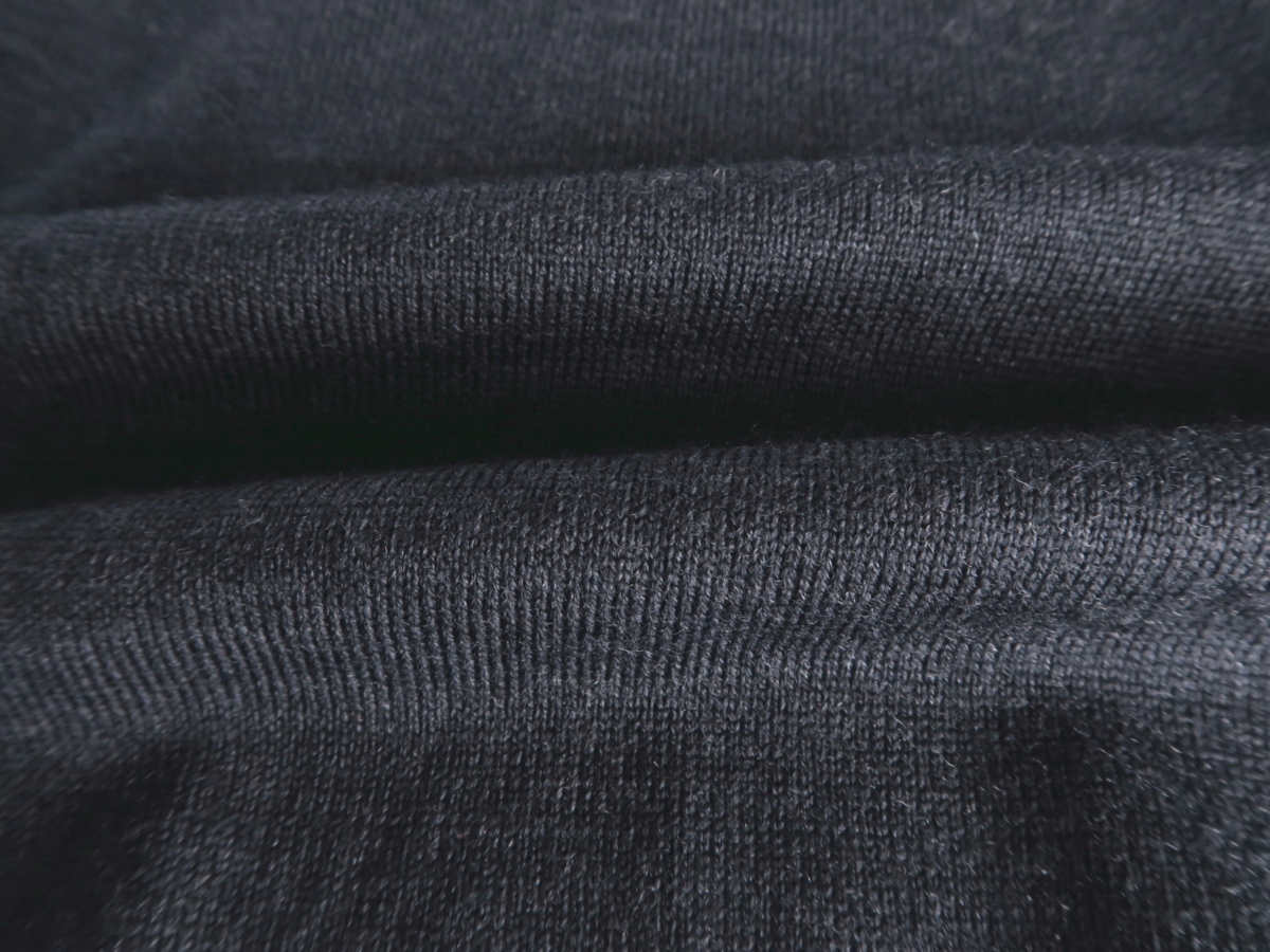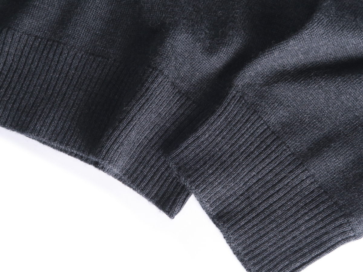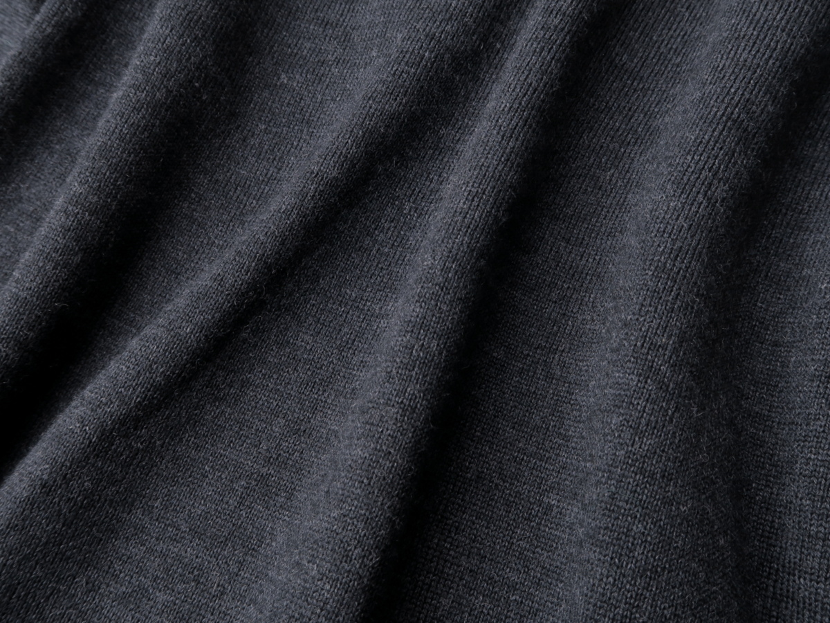 ハイゲージの繊維を丁寧に編み立てた艶感とボリュームを抑えた作りが