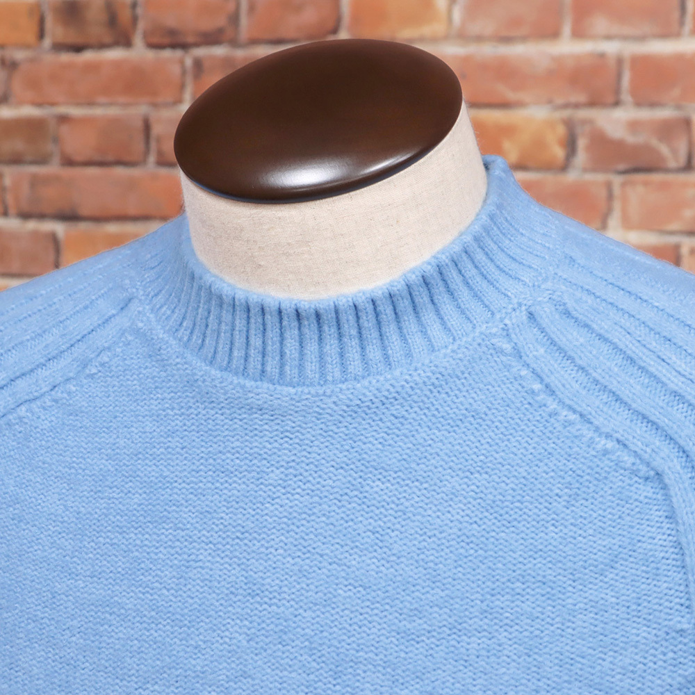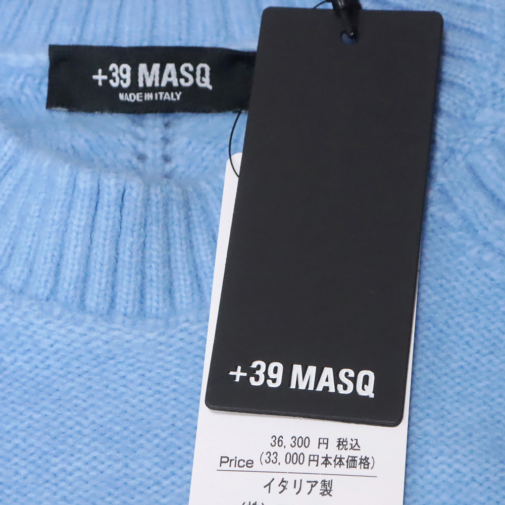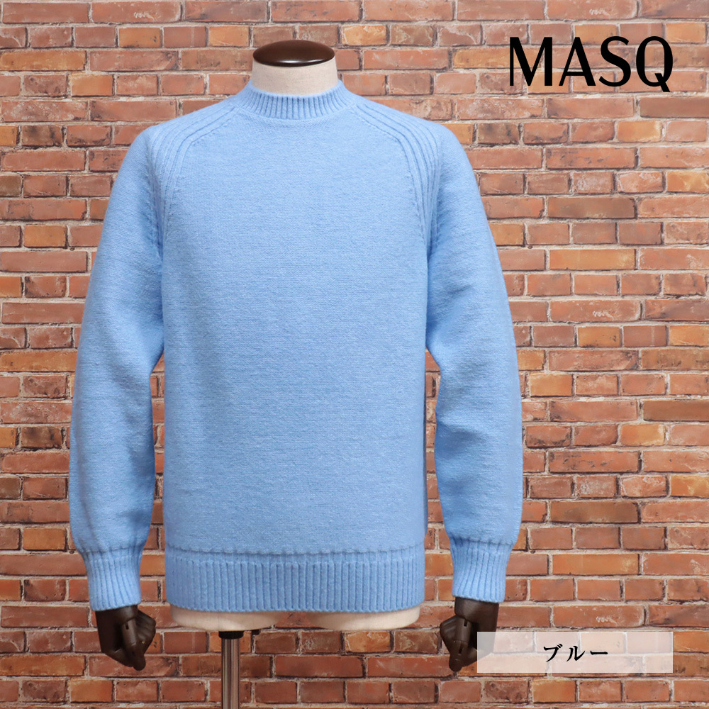 1円/秋冬/MASQ/50サイズ/長袖ニット イタリア製 モックネック 裏編み 起毛 ウールブレンド ラグラン マスク 新品/青/ブルー/ma420/