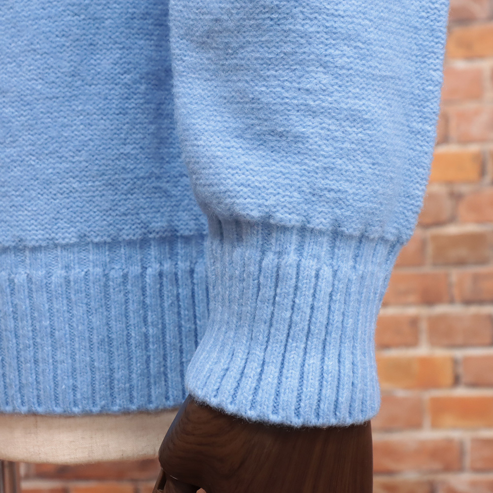 落ち着いた印象を与えるモックネックニット。ウールブレンドのミドルゲージニットを使用しています。表面をふんわりと起毛させた季節感のある風合いが魅力。見た目どおりのあたたかさに加え、やわらかな肌触りで、寒い季節のスタイリングに頼れる一枚となっています。