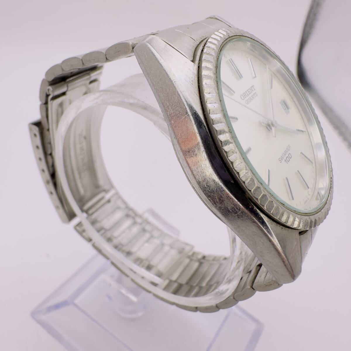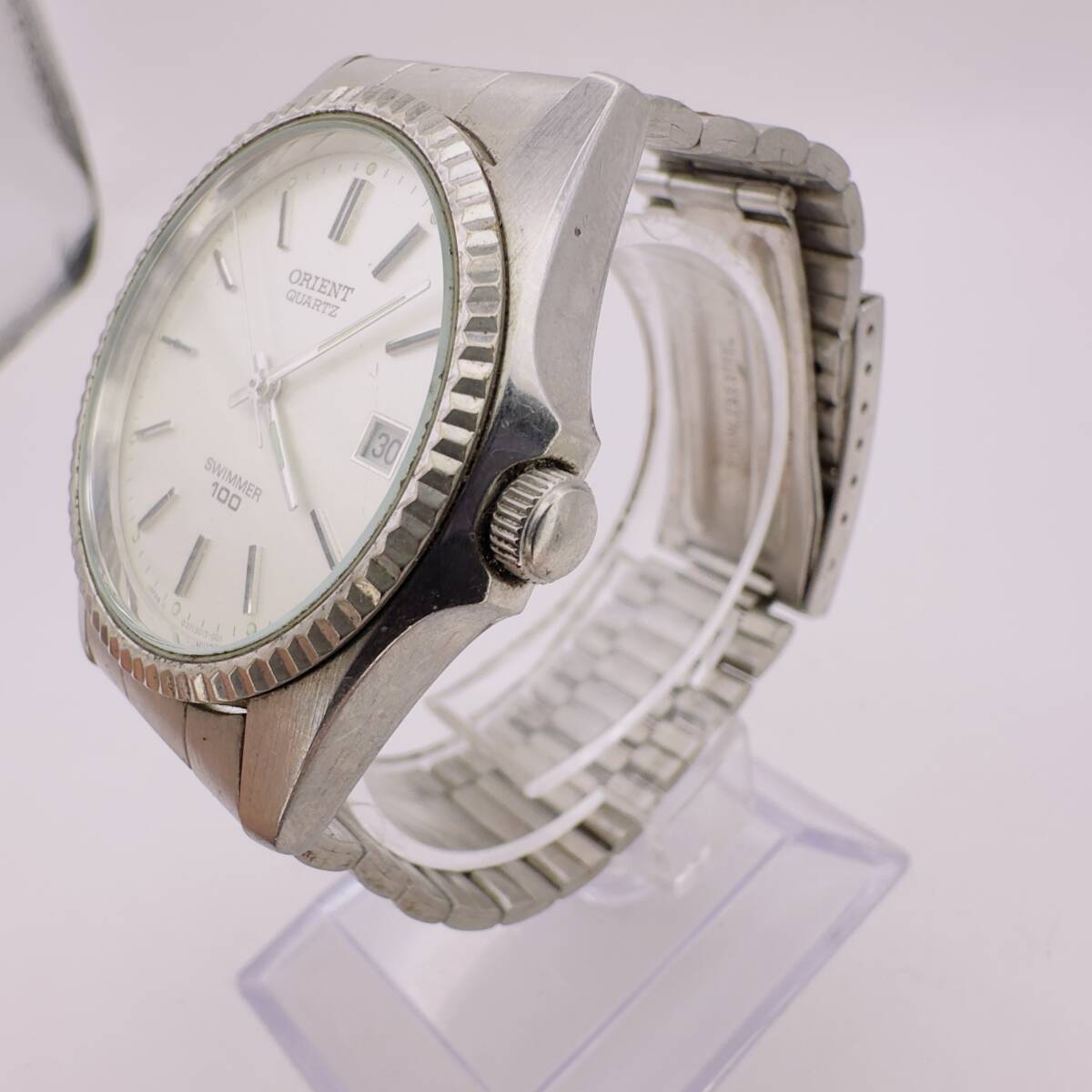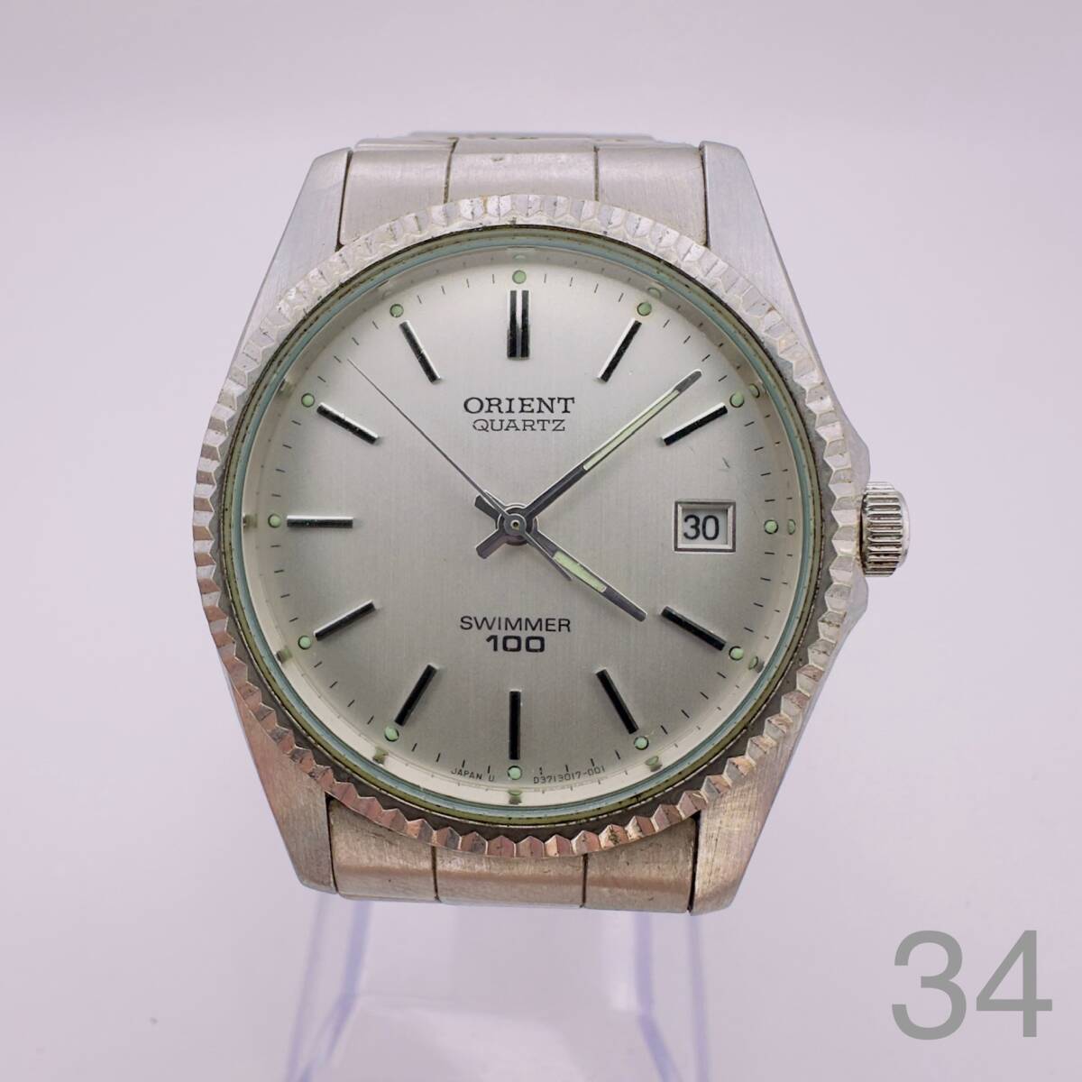 こちらは ORIENT QUARTZ(型番 JAPAN 03713017-001)の腕時計です。シルバーカラーの落ち着いたデザインで、日常使いに適したベーシックなモデルです。