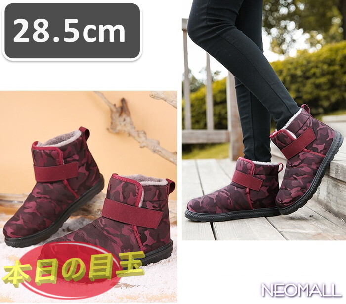 ユニセックス スノーシューズ 【870】 28.5cm 迷彩レッド ムートンブーツ スニーカー ウィンターブーツ 裏起毛 防水 防寒 防滑 冬用靴