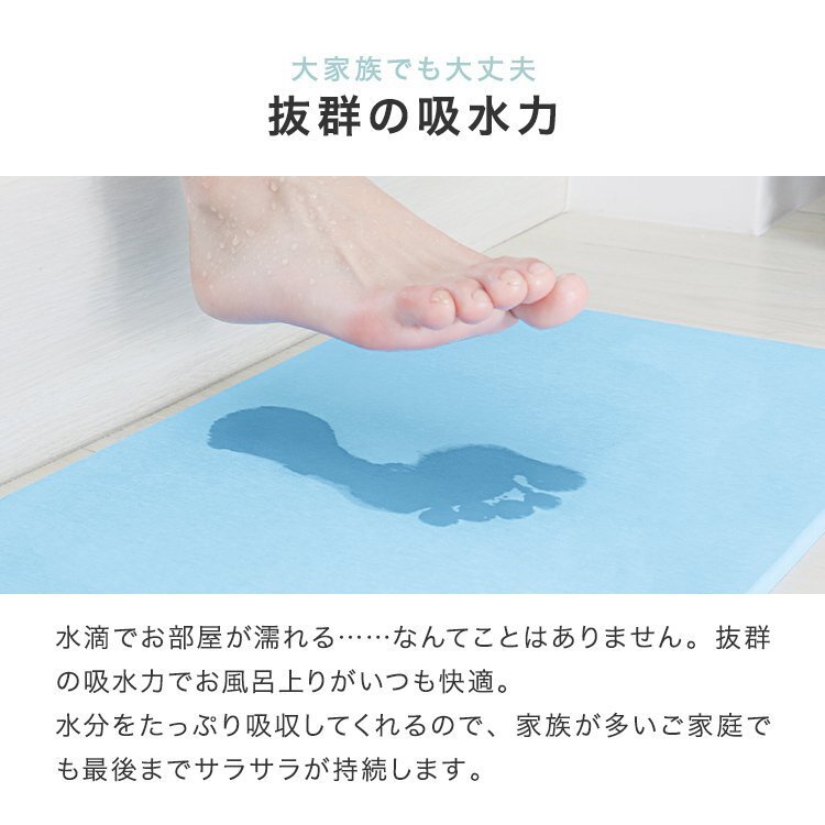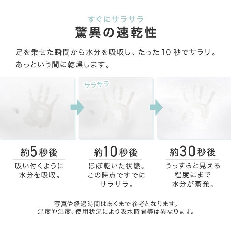 珪藻土の持つ優れた吸水性で、湯上りの濡れた足の裏の水分をすばやく吸い取ってくれます。