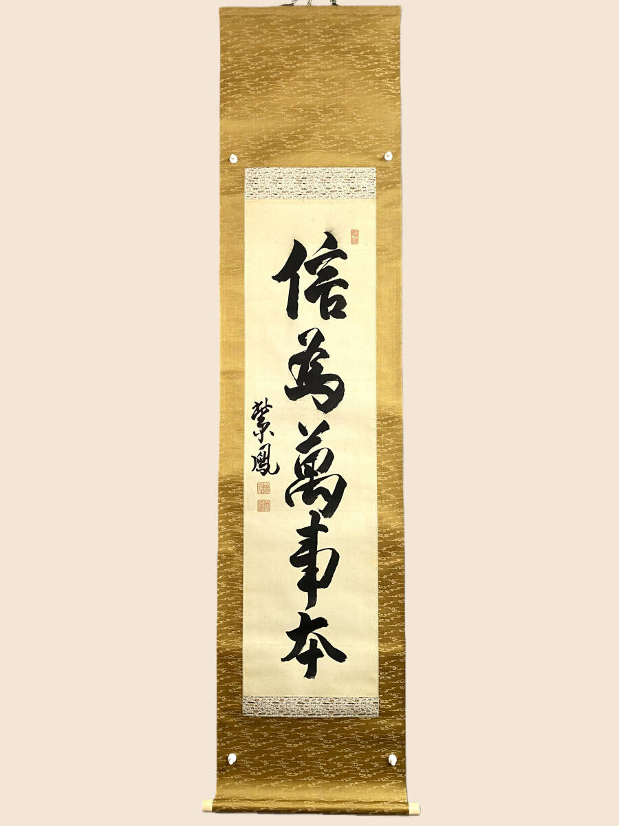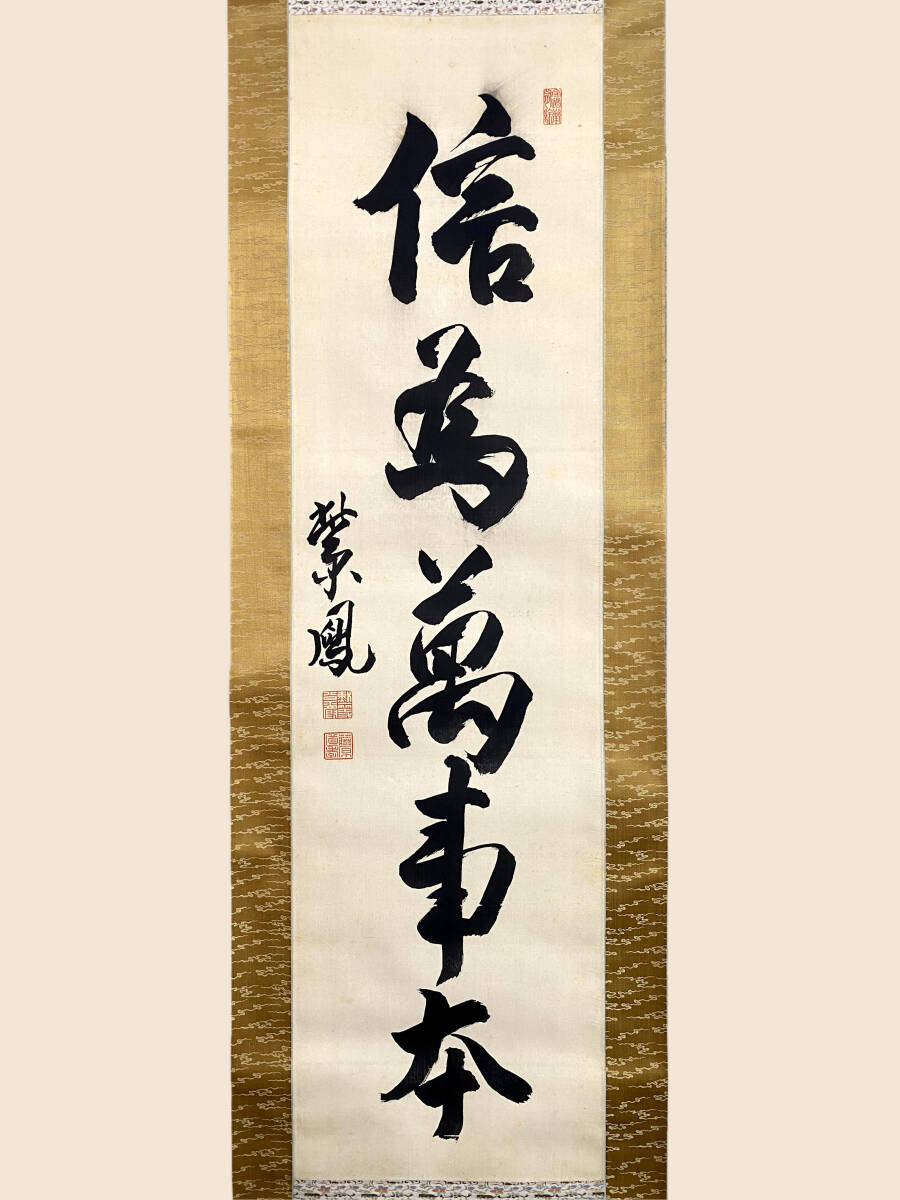 『模写』藤原道孝 九条道孝 紫鳳『信為萬事本』絹本 一行書 最後の藤氏長者 明治時代の公卿 華族 奥羽鎮撫総督 公爵 掛軸 璟蔵25101768