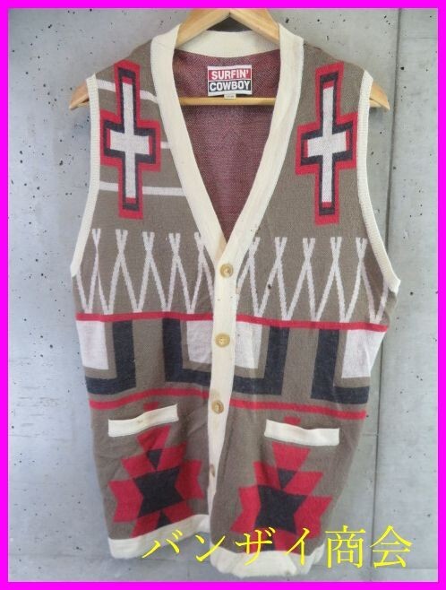 7111b15◆お洒落◆SURFIN' COWBOY サーフィンカウボーイ ネイティブ柄 ニットベスト L/セーター/カーディガン/ジャケット/シャツ