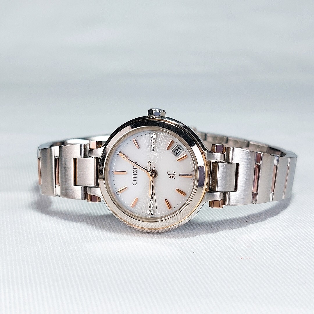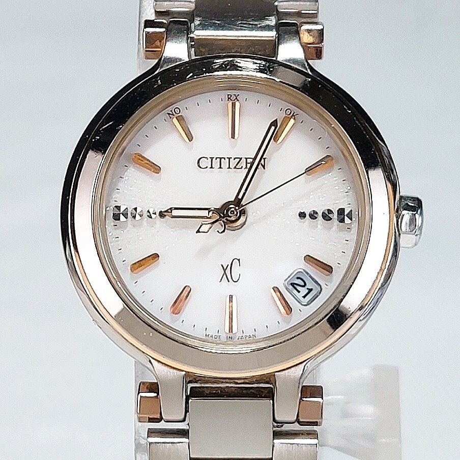 美品 CITIZEN シチズン XC クロスシー 腕時計 H054-T017908 電波ソーラー エコドライブ アナログ ラウンド カレンダー コレクション