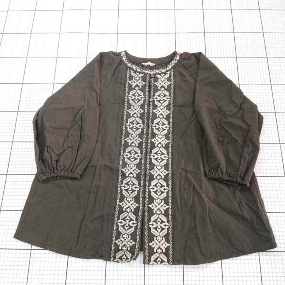 ◇ Θ SM2 サマンサ モスモス 刺? 長袖 シャツ ブラウス サイズF チャコールグレー系 レディース メンズ E