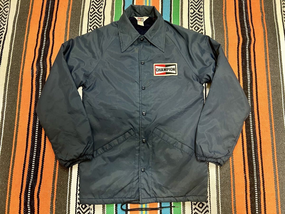 送料無料 チャンピオンプラグ コーチジャケット USA製 70sビンテージ S ネイビー 紺 ボアジャケット ナイロンジャケット ラグランスリーブ