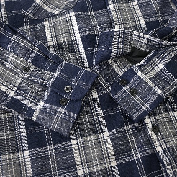 表地にはチェック柄を表現した秋冬らしいフランネル素材、裏地には暖かくて肌心地もよいベロア素材を使用したシャツブルゾンです。 表裏ともに滑らかな起毛感で、防寒性、保温性に優れ、一枚あると様々なシーンで活躍します。 カジュアルはもちろん、トレンドのキャンプ、アウトドアテイストにも取り入れていただけます。 デザインはシンプルベーシックで飽きの来ない定番的なスタイルになっています。 【デザイン】 ・総裏仕立て(身頃裏にベロア、袖裏にタフタ使用) ・袖先は本開き |