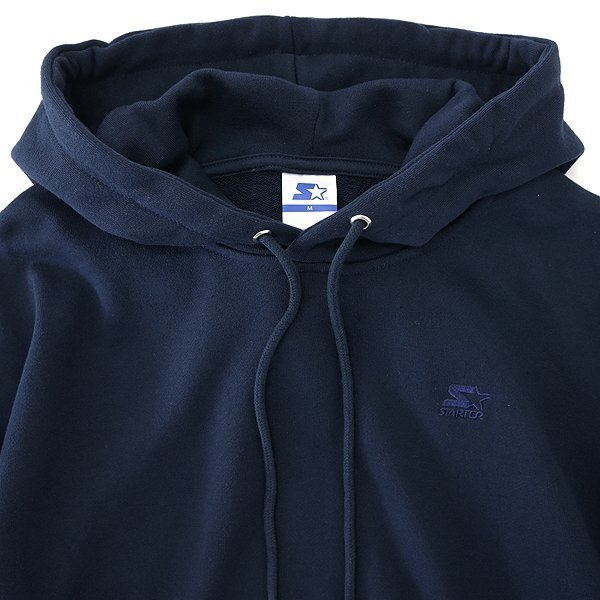 【STARTER(スターター)】 スポーツウェアとポップカルチャーを融合した先駆けのブランドとして知られる、アメリカのファッションブランド。 80年代にはブランドとして初めて、NFL、MLB、NHL、NBA、などのプロメジャーリーグと提携し、またNCAA(全米大学体育協会)を通じ120もの大学とも提携。 90年代には一流のプロアスリートやヒップホップ・映画・テレビ業界の著名人とコラボレートし、世界初のクロスオーバーブランドとなりました。 STARTERのチームジャケットは今でも多くのファンの憧れであり、80・90年代のスポーツシーンを象徴する伝説のアイテムとなっています。 -------------------- ベーシックなデザインで、スポーツ、ストリート、カジュアルにもなじむプルオーバーパーカーです。 伸縮性の良い裏毛スウェット素材を使用しており、動きやすくて羽織りやすく、ロングシーズンで着用が可能です。 胸と袖に施された同色のブランドロゴ刺繍が、さりげないアクセントになっています。 トレンドのビッグシルエットを採用しており、ゆったりとしたこなれ感のある着こなしが楽しめます。 カジュアル、スポーツ、リラックスタイムなど、幅広いシーンで活躍してくれるアイテムです。 |