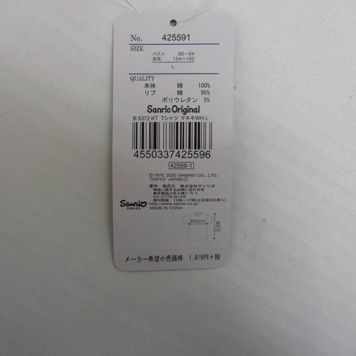| 商品説明 | ■商品 人気ブランド「サンリオ SANRIO」の厳選したアイテムを出品しております。商品に関しましては、丁寧に検品しております。 ブランド サンリオ/SANRIO 表記サイズ Lサイズ カラー 白×グレー×赤 (掲載写真でご確認ください) 素材 素材タグを撮影しておりますので、ご確認下さいませ。 対象 レディース 付属品 なし 状態 こちらは未使用のお品となります。 保管に伴う多少のダメージはご了承下さいませ。 |