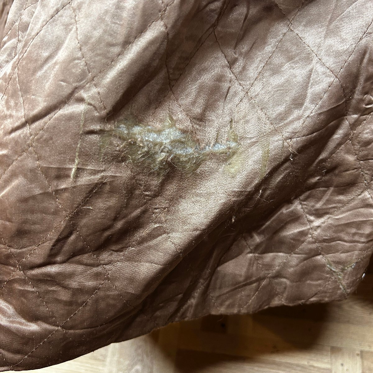 中古品です。使用感があります。写真にあるように裏地に擦り切れがあります。他は特にダメージはありません。
