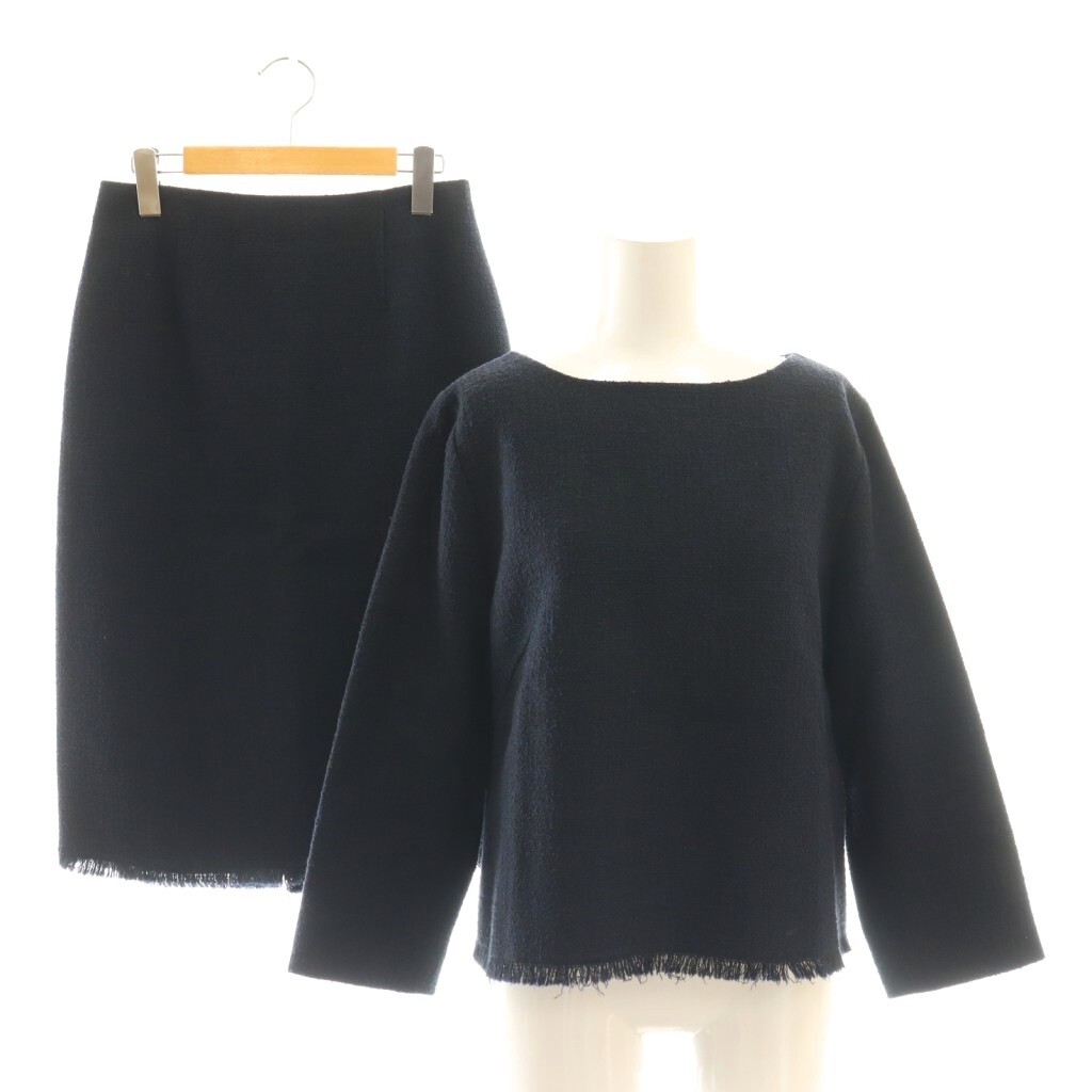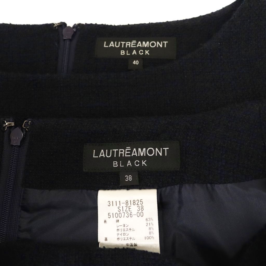 ロートレアモン LAUTREAMONT ブラック ツイード セットアップ ブラウス タイトスカート ひざ丈 40 38 ネイビー /DF ■OS レディース