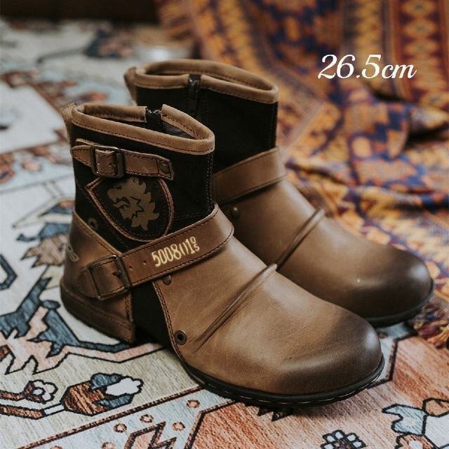 ワークブーツ ブーツ メンズブーツ シューズ   レザー靴 ライダース ハイカット ミリタリー カジュアル 身長アップ ブラウン 26.5cm