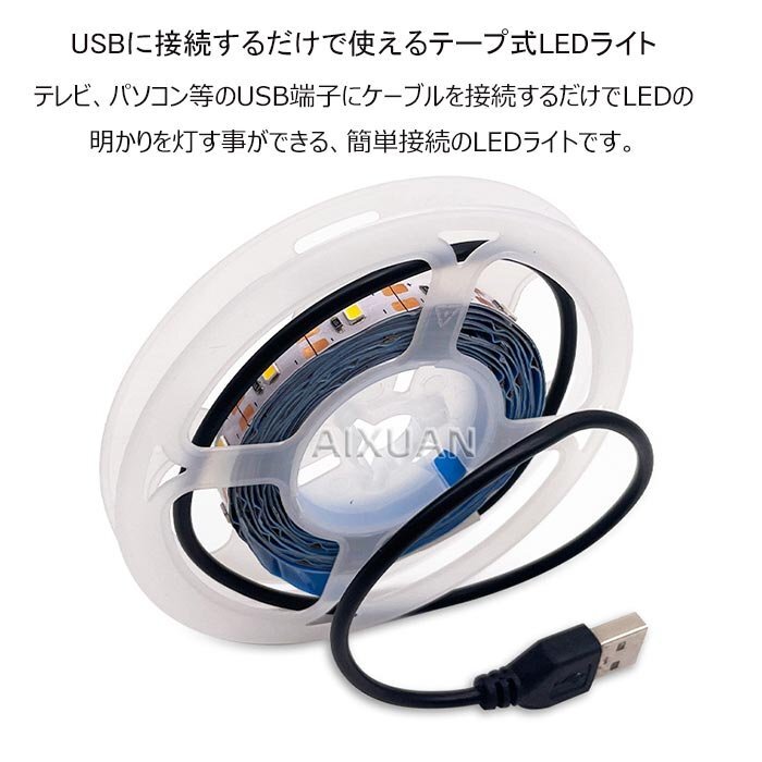 LEDテープライト 5m テープライト 粘着テープ USB 高輝度 屋外 防水 室内 LEDライト ネオンライト 切断可能 折り曲げ自在 ☆2色選択/1点