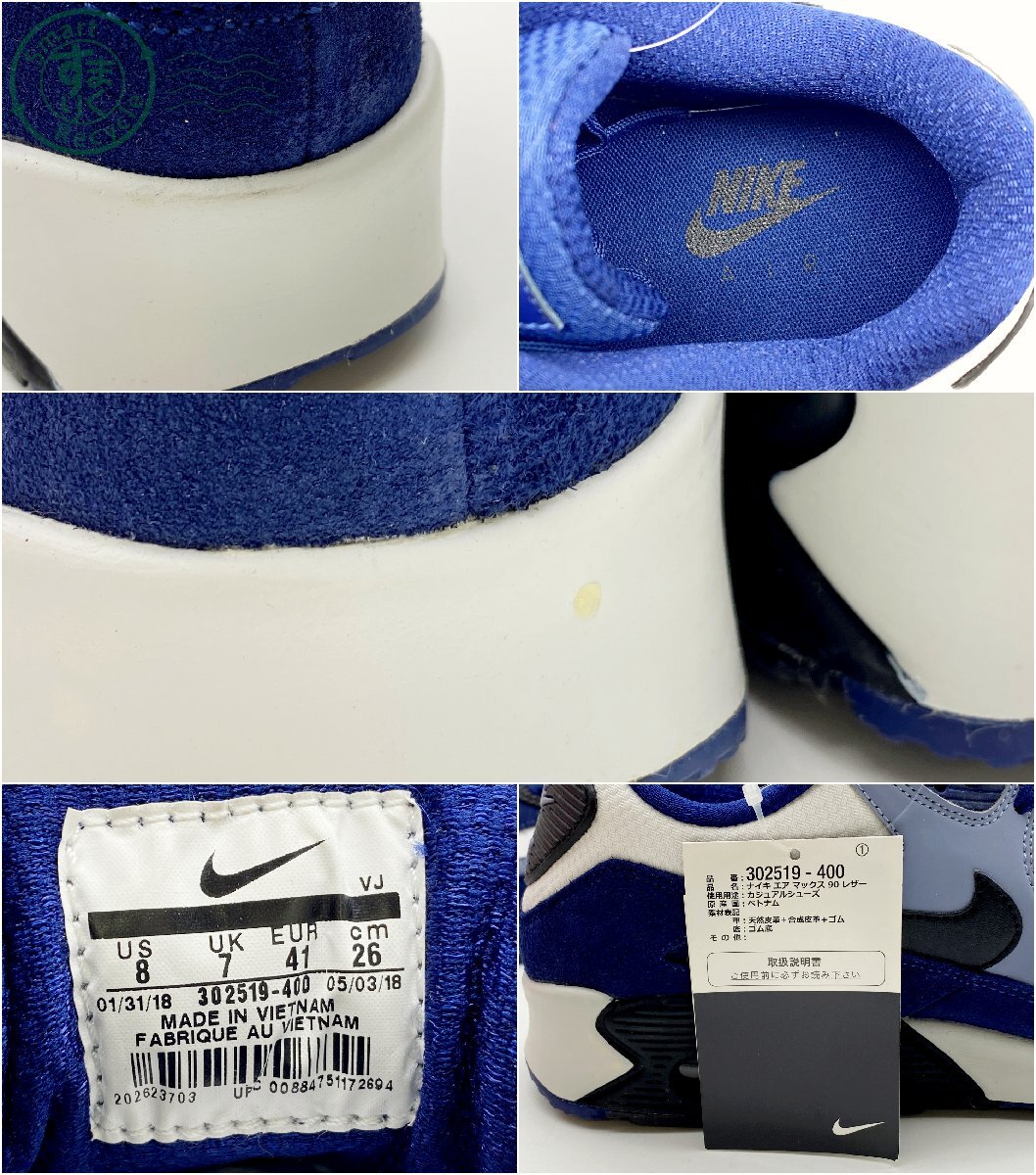 * 1円~ NIKE 26cm ナイキ 302519 エアマックス90 スニーカー シューズ ブルー系 ホワイト系 メンズ タグ付 中古品 used品 1 | |||
