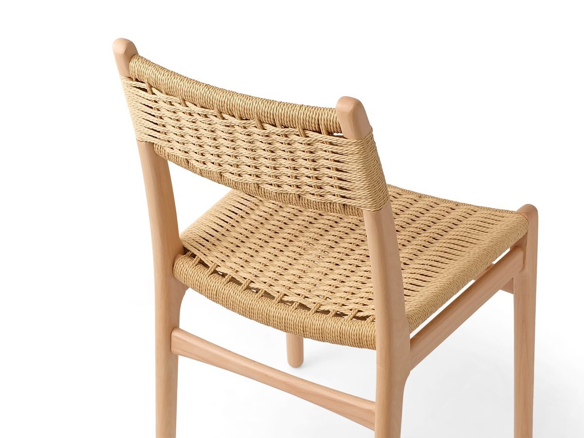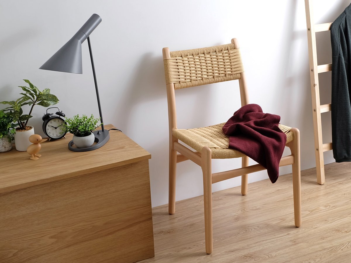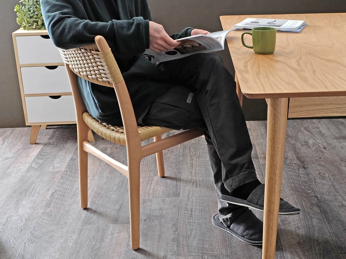 木の質感を活かしたナチュラルなウッドフレームとペーパーコードの座面は、