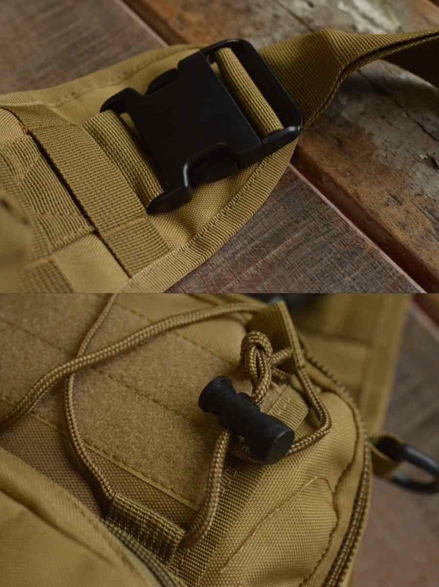 サイドリリースバックル、コードストッパー、バンジーコード、マジックテープ(ベルクロ)を惜しみなく採用しカッコよく仕上がっています。