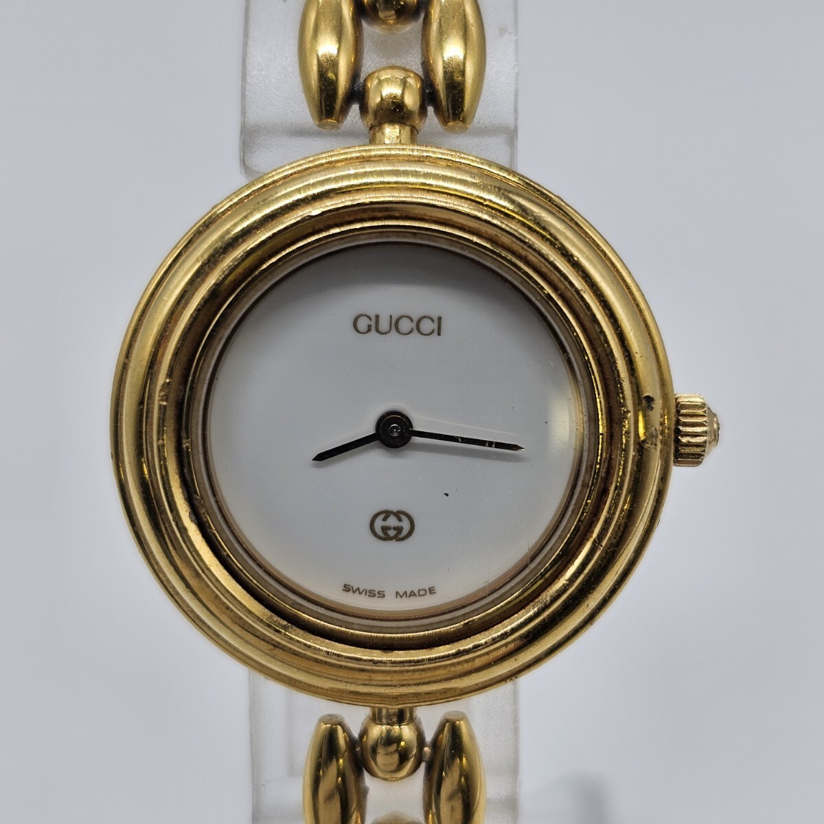 【11U11】1円スタート GUCCI / 11/12 グッチ チェンジベゼル レディース 腕時計 クォーツ 電池式 ホワイト文字盤 GGロゴ