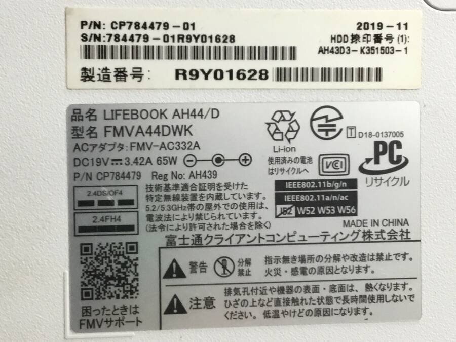 FUJITSU FMVA44DWK LIFEBOOK AH44/D Ryzen 7 2700U 2.20GHz■ジャンク品
