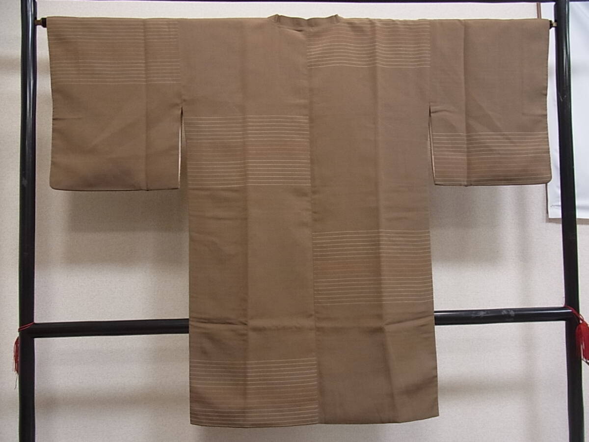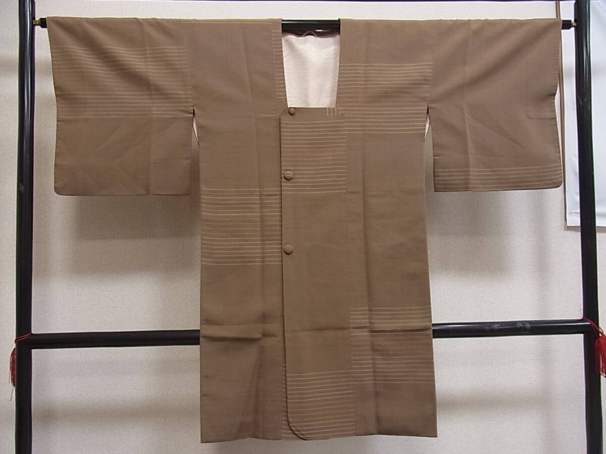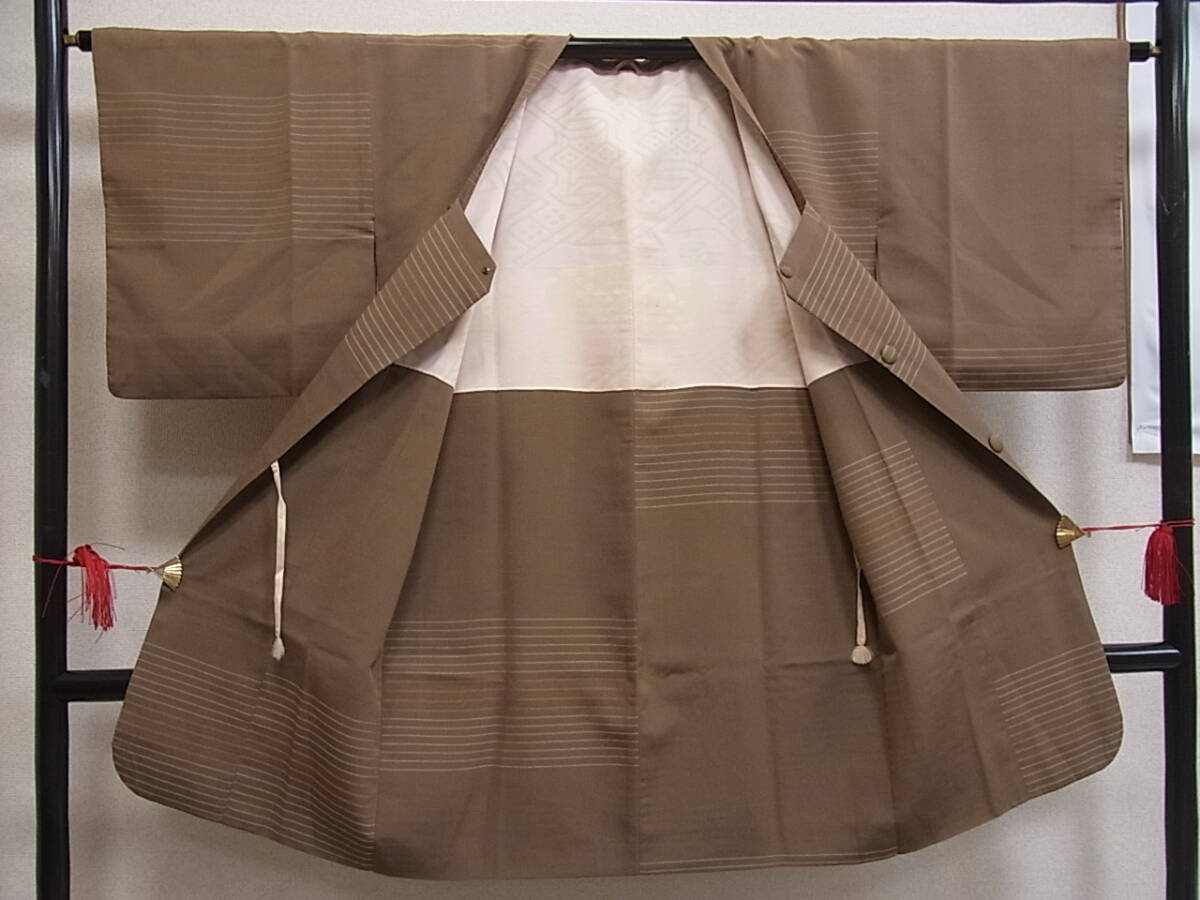 着物おきな2★道行コート お召地 ロング丈 横段文 正絹★r237