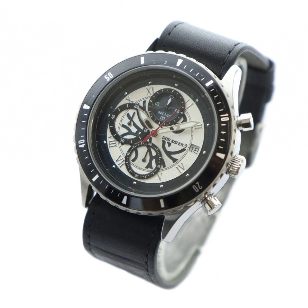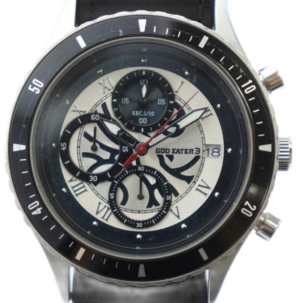 ゴッドイーター3 GOD EATER3 主人公(男)モデル 腕時計 ウォッチ クォーツ デイト カレンダー付き クロノグラフ シルバー色 ■GY11 /MQ メンズ