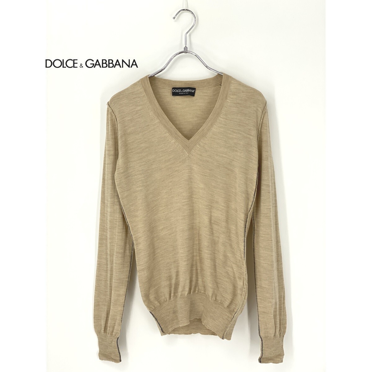 A8326/美品 春夏 DOLCE&GABBANA ドルチェアンドガッバーナ カシミヤ シルク 長袖 ニット セーター 38 XS程 ベージュ/イタリア製 レディース