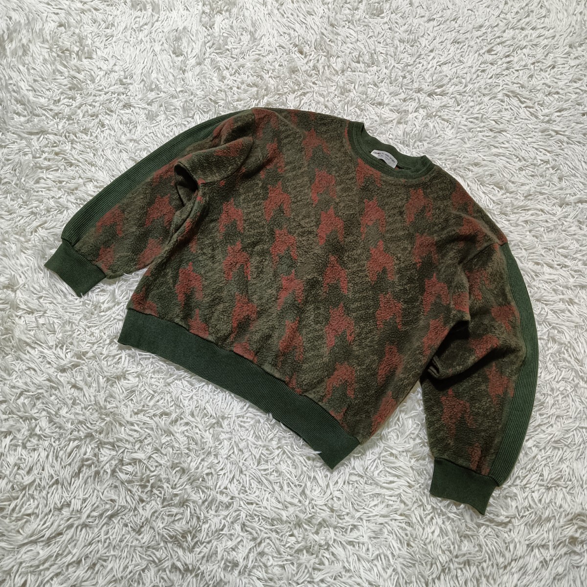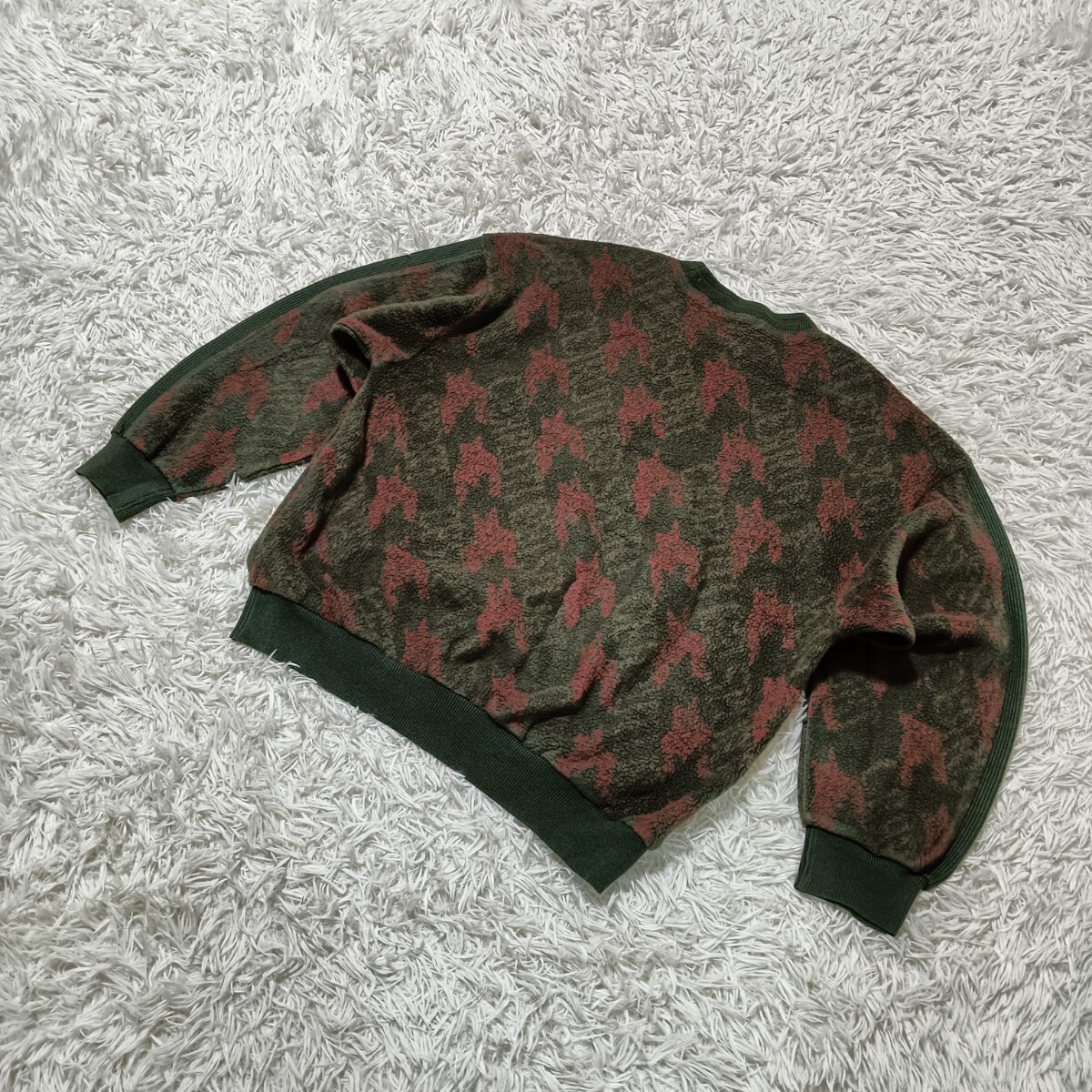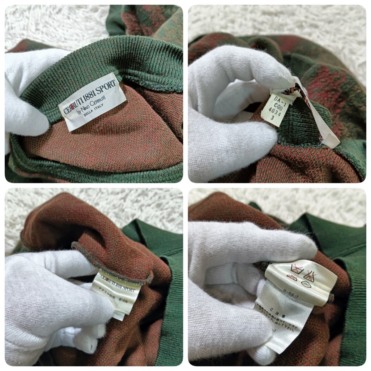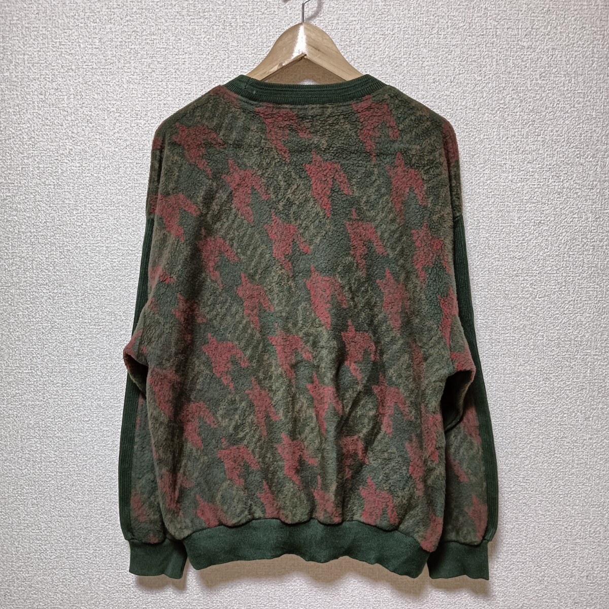 ★CERRUTI 1881 SPORT トレーナー スウェットトップス フリース ウール混 ニット セーター プルオーバー 長袖 ロングスリーブ クルーネック モスグリーン 総柄 マルチカラー ユニセックス レディース メンズ サイズフリー ヴィンテージ オールド セルッティ チェルッティ 古着 USED