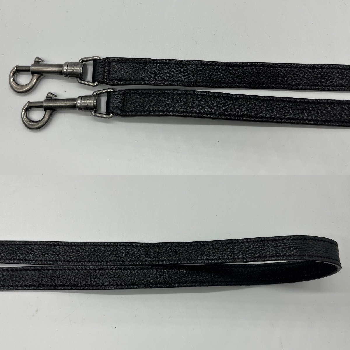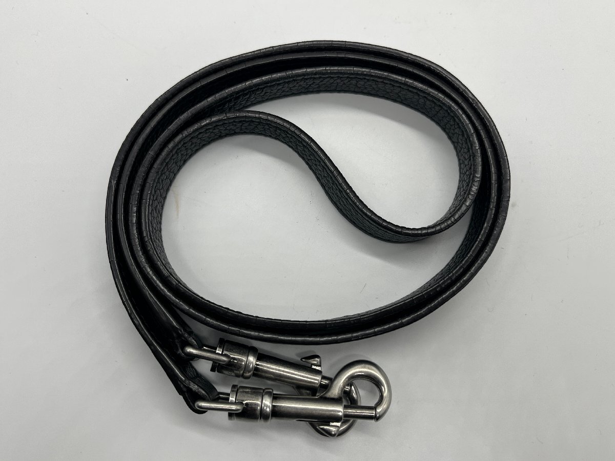 シルバー金具がアクセントとなり、ブラックレザーとのコントラストがモダンで洗練された印象を演出します。