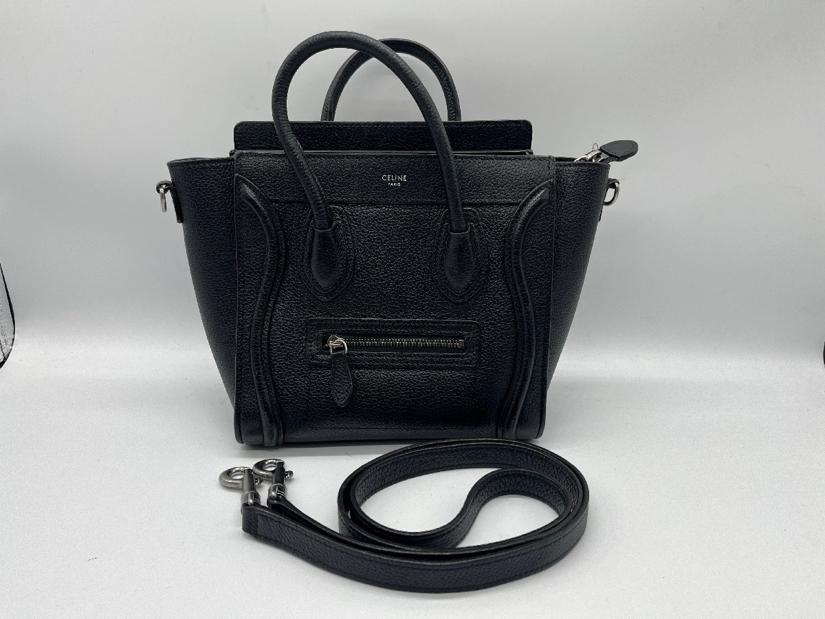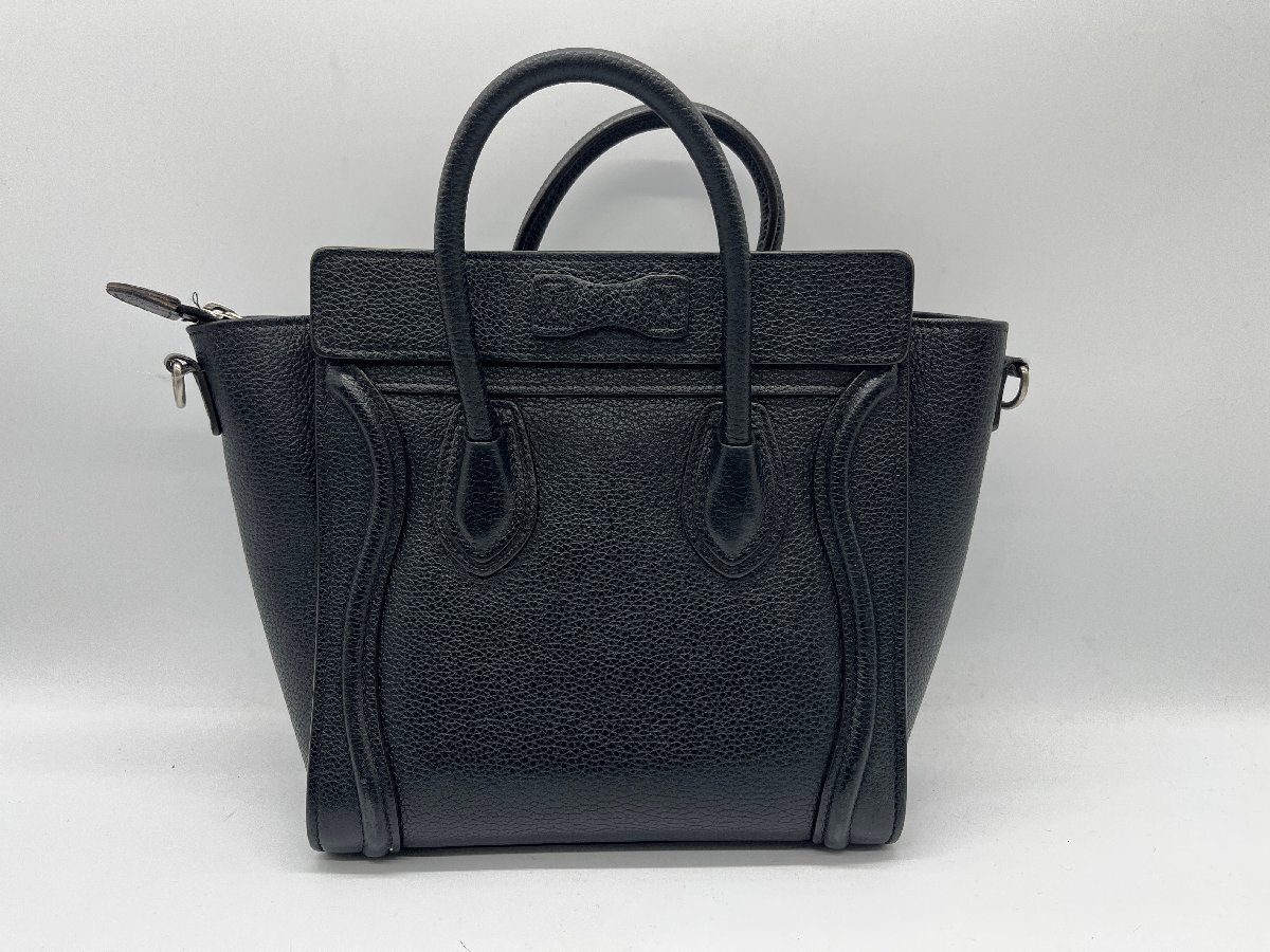 β人気【CELINE セリーヌ ラゲージ ナノショッパー ブラック シルバー金具 2WAY ハンドバッグ ショルダーバッグ レディース】ON02781