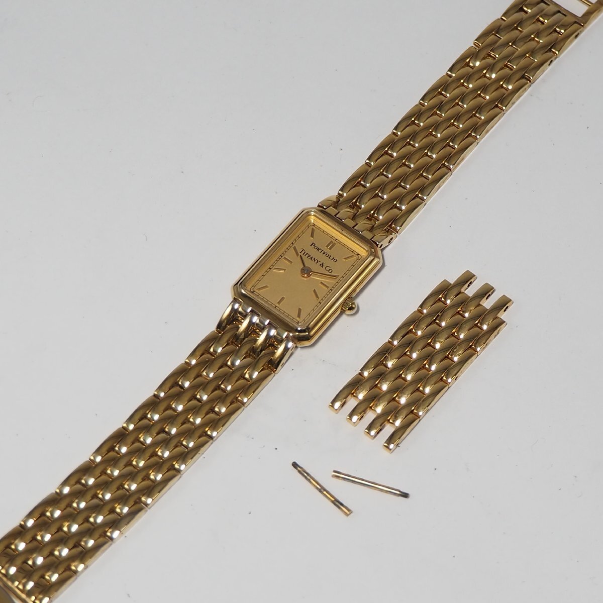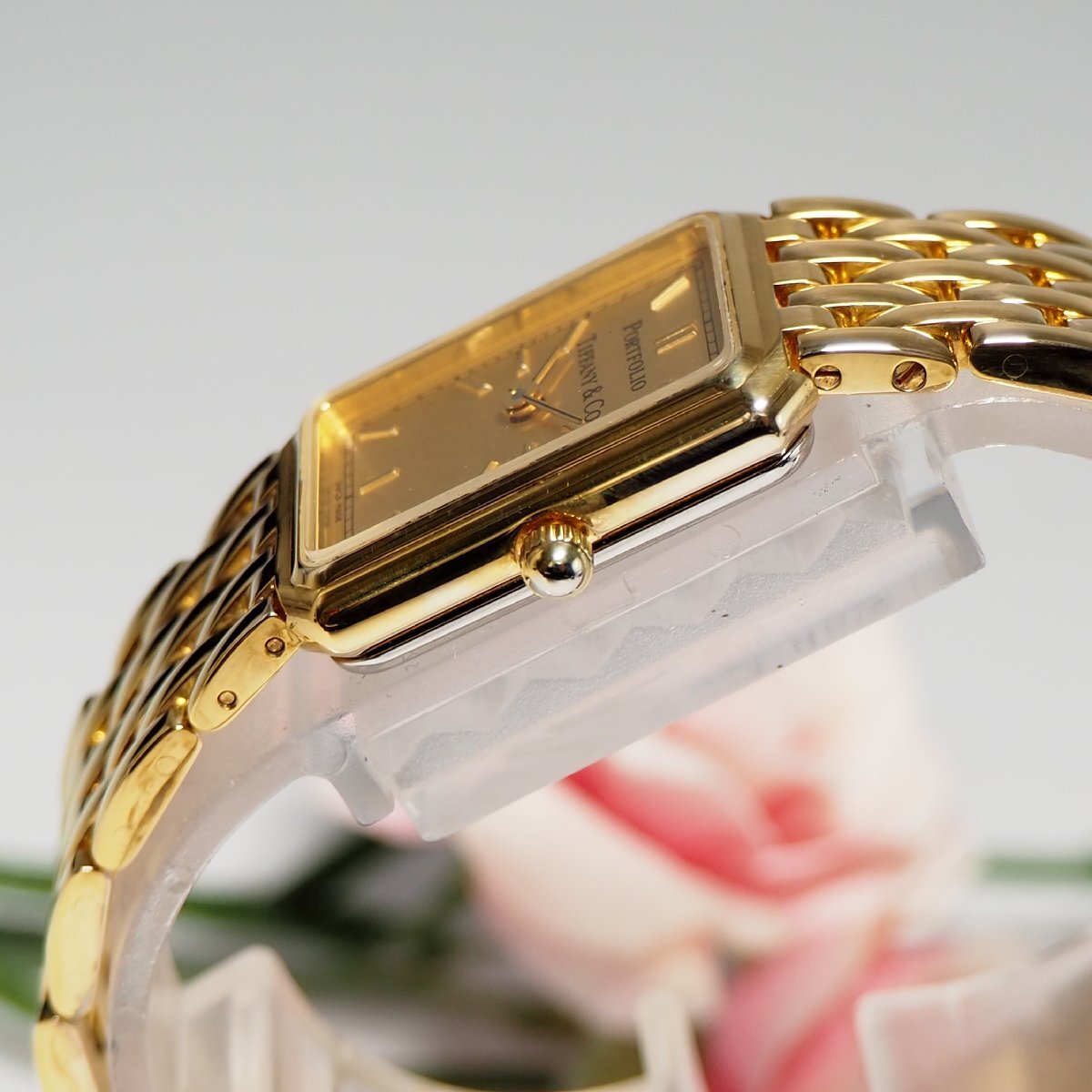 ティファニーのポートフォリオレディース腕時計です。 見かけない時計ですので結構レアな1本かと思います。 稼働品で除菌クリーニング致しておりますのですぐにご使用いただける状態です。 ☆管理番号:H505 ☆稼働品 ☆クリーニング (超音波洗浄+エタノール除菌クリーニング) ☆防水:日常防水 ☆ムーブメント:クォーツ ☆素材:ステンレス ☆電池交換:新品電池交換済(2025/11) 【サイズ】 ◇ケース幅約18mm×24mm(リューズ含まず) ◇厚さ約5mm ◇腕回り約160mm(余りコマが4個ございますので30mmくらい大きくできます) 【カラー】 ◇文字盤:ゴールド ◇ケース:ゴールド ◇ベゼル:ゴールド ◇ベルト:ゴールド 【状態】 ◇A ☆全体評価:全体的にキズは少なく綺麗な状態です。 ☆ケース:ほぼキズなし ☆ベゼル:ほぼキズなし ☆ガラス:キズなし ☆裏蓋:キズなし ☆ベルト:キズなし ☆その他特記事項:- 【付属品】 ◇本体のみ ※公安委員会の古物商許可証の元古物市場(コメ兵、ブランドオフ、エコリング等)にて購入したものです。 全て【正規品保証】致します。 過去1度も経験はございませんがコピー品であった場合返品返金対応をさせていただきますので安心してご購入下さい。 |