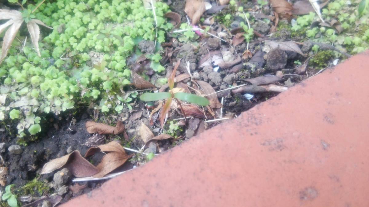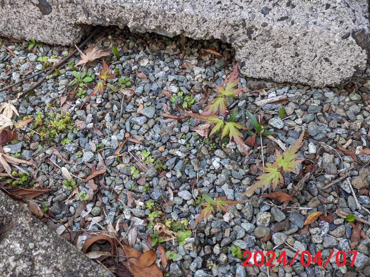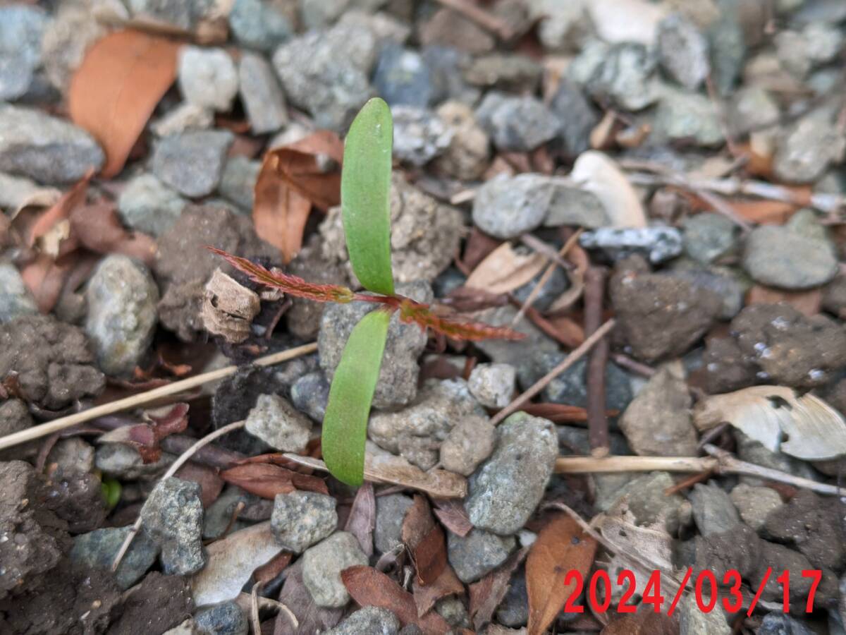 ★発芽しました。2024/3月、4月撮影・・・毎年10~12月に落ちた種子が年明けの3月~5月に毎年発芽しています。