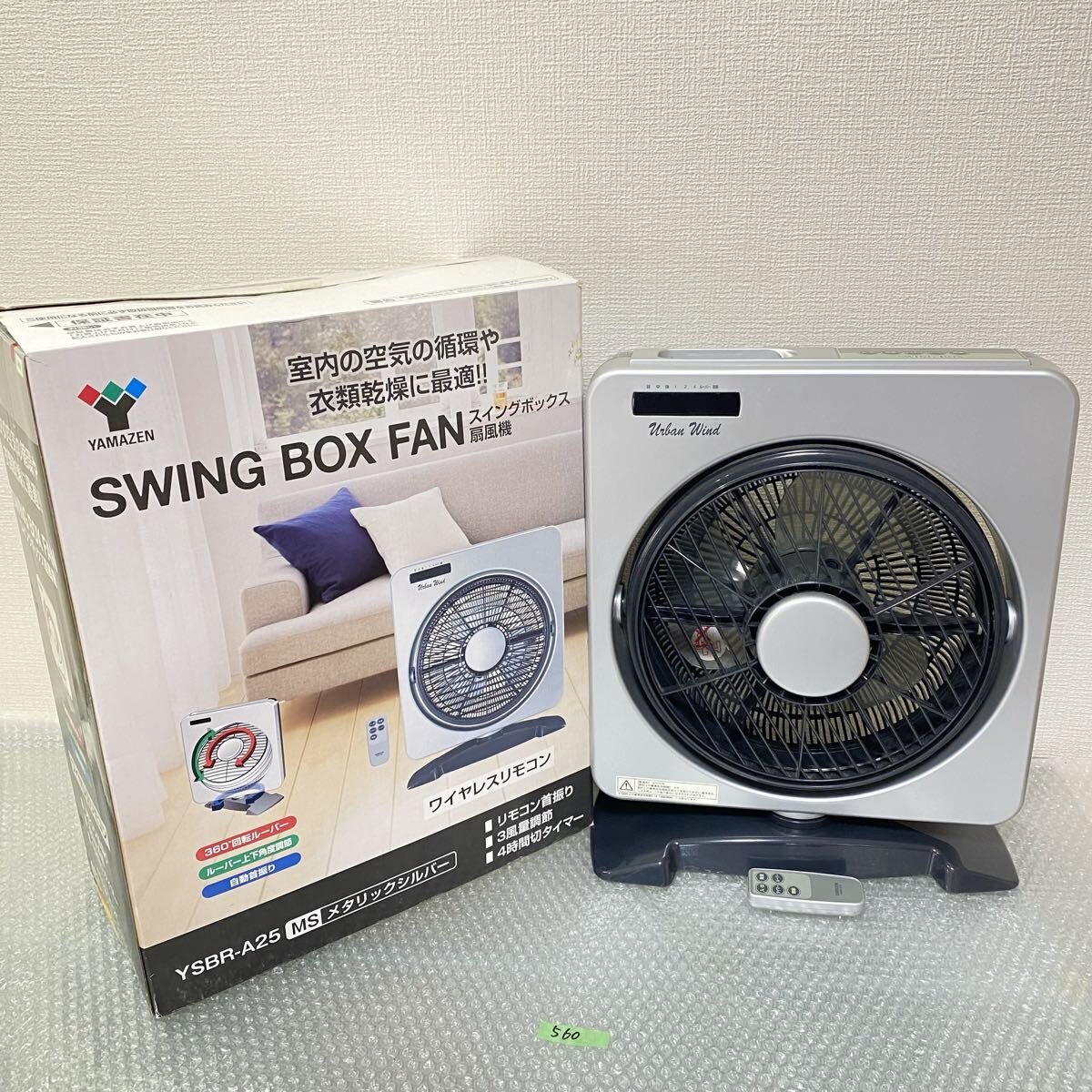 同梱可【560】DMky-11.21/山善(YAMAZEN)YSBR-A25 メタリックシルバー スイングボックス扇風機 リモコン付き 動作確認済み