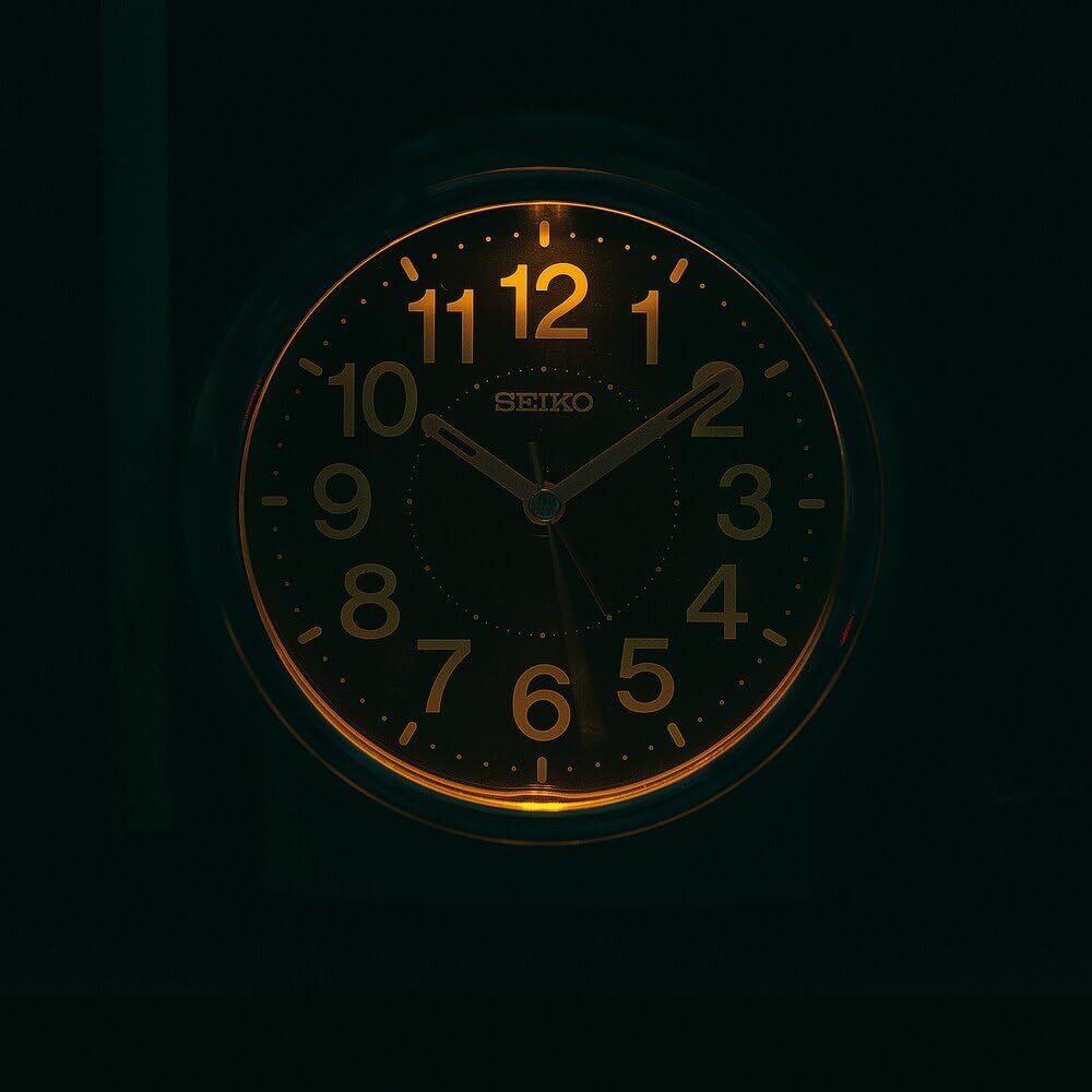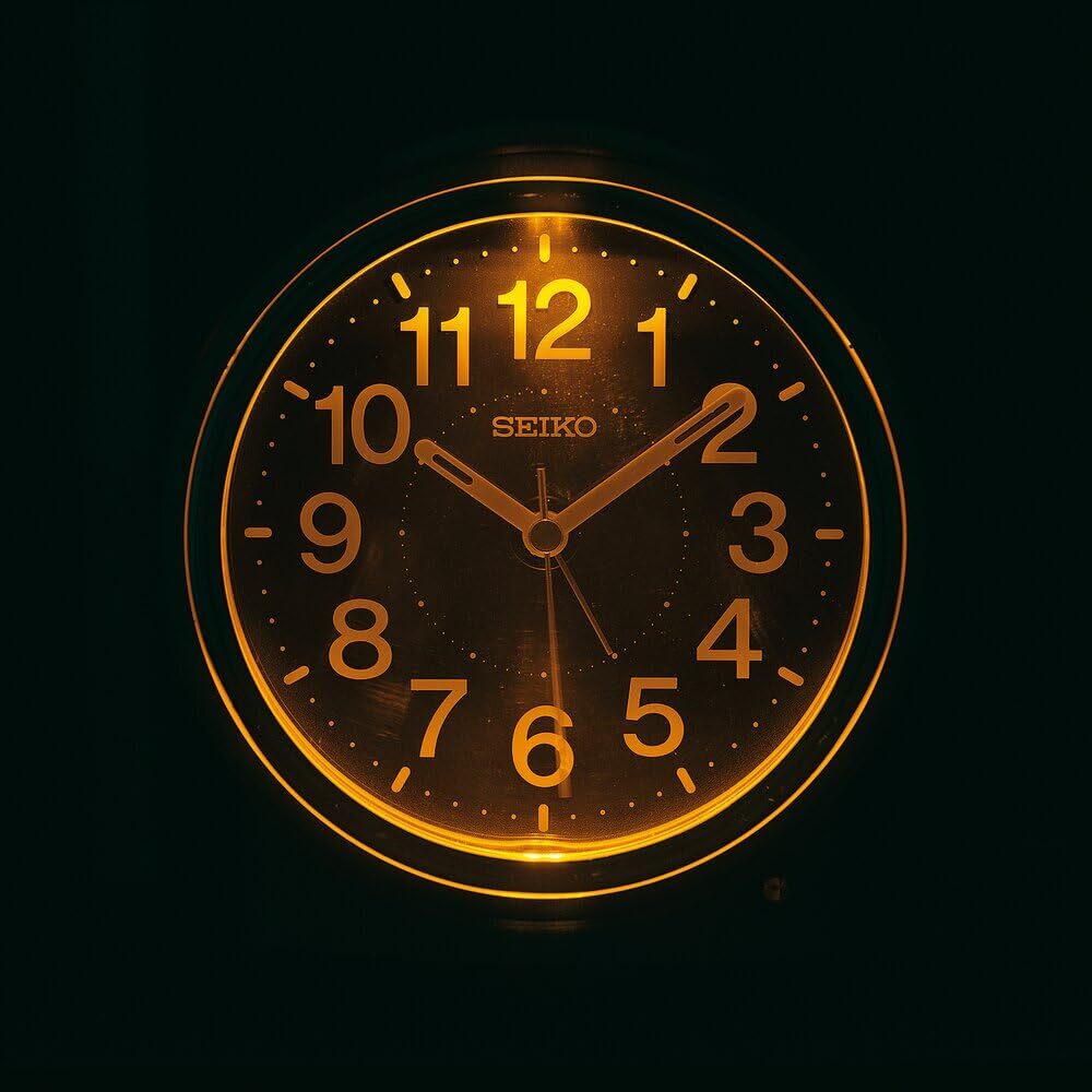 暗さを感知して自動でライトが点灯。文字板を均一に照らします。 ◆電子音 電子的に合成したアラーム音です。 ◆スヌーズ アラームを止めても数分後に再び鳴り出す機能です。 ◆オートスヌーズ機能 鳴っているアラームをそのままにすると、約2分間鳴って約5分間の停止を繰り返します。 アラームスイッチをOFFにしない限り約30分~60分間動作し、12時間後のアラーム設定時刻には再びアラームが鳴ります。 ◆ライト 小さな電球やLEDライトが文字板面を照らす機能です。 ◆スイープセコンド 秒針が連続してなめらかに動きます。 ◆ダンダントーン 電子的に合成したアラーム音です。 だんだんテンポが速くなる電子音です。 ◆集光樹脂文字板 特殊な蛍光塗料が配合されたプラスチックを使用した文字板。外部からの光を吸収し印刷部分や端面から放出する性質があります。わずかな光でも効率良く反射して見やすい文字板です。