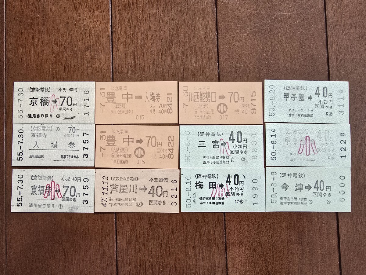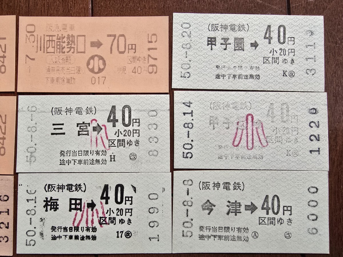 ・乗車券・・三宮駅、甲子園駅、梅田駅、今津駅
