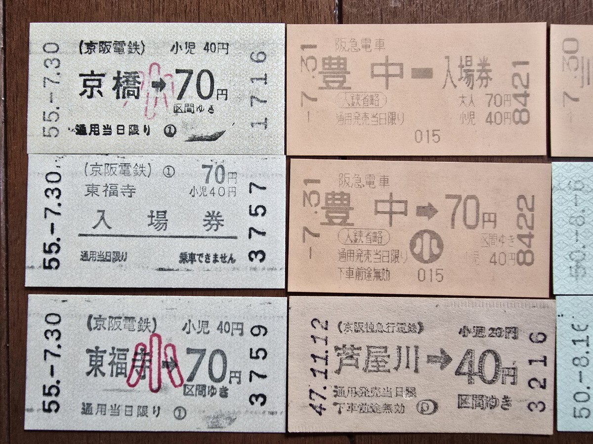 ・入場券・・東福寺駅、乗車券・・東福寺駅、京橋駅