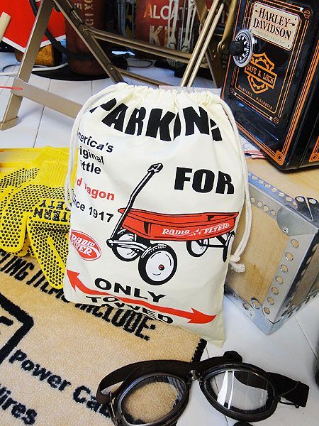 アメリカ人が大好きなレッドワゴン、ラジオフライヤーのキンチャク袋です。