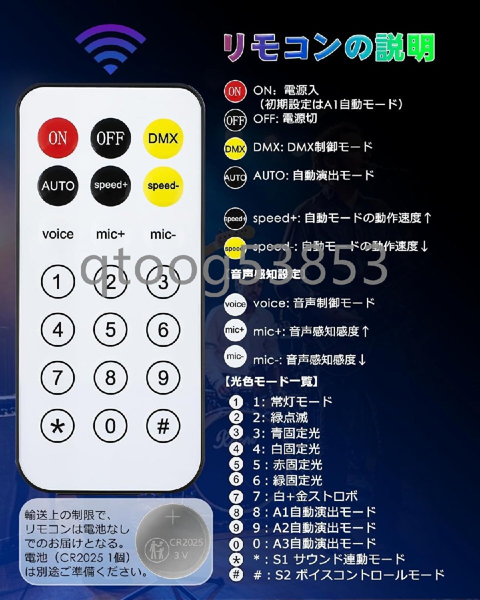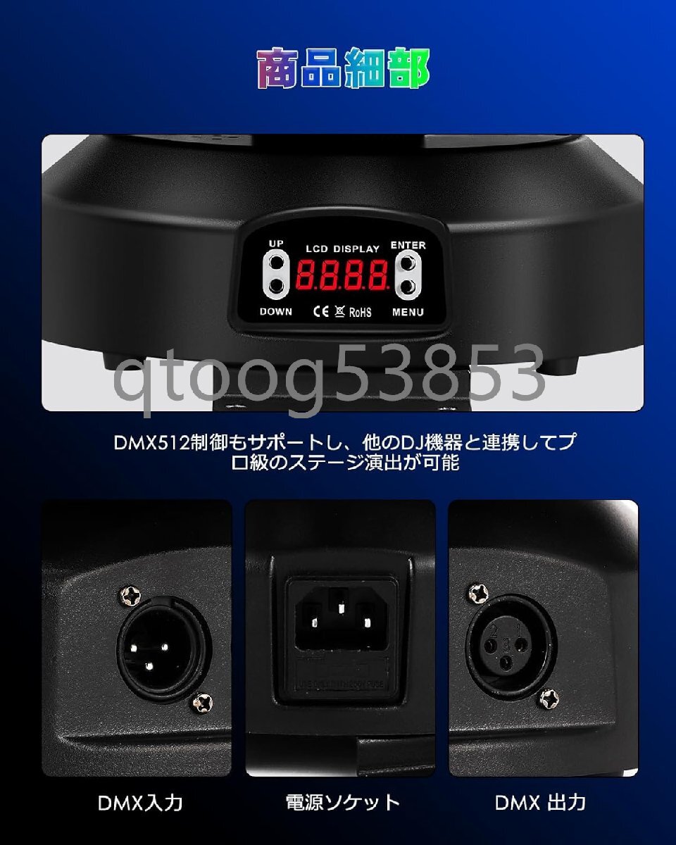 【4大制御方式で便利】このパーティーライトはDMX512音声自動リモコン制御という合わせて四つの制御方式があります。ボタンを軽く押すだけで、モード、スピード、音響感度などが調整できます。国際標準のDMX512制御もサポートし、他のDJ機器と連携してプロ級のステージ演出が可能です。