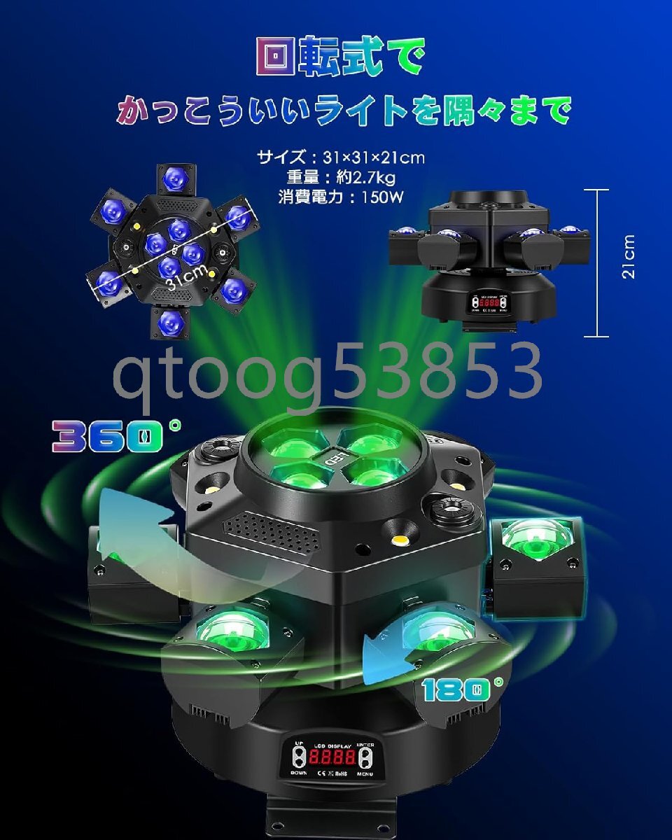 ステージライト 舞台照明 パーティーライト 150W RGBW 4+6 10個の10WLED搭載 DMX512対応 4大制御方式 540°回転 スタンド付き