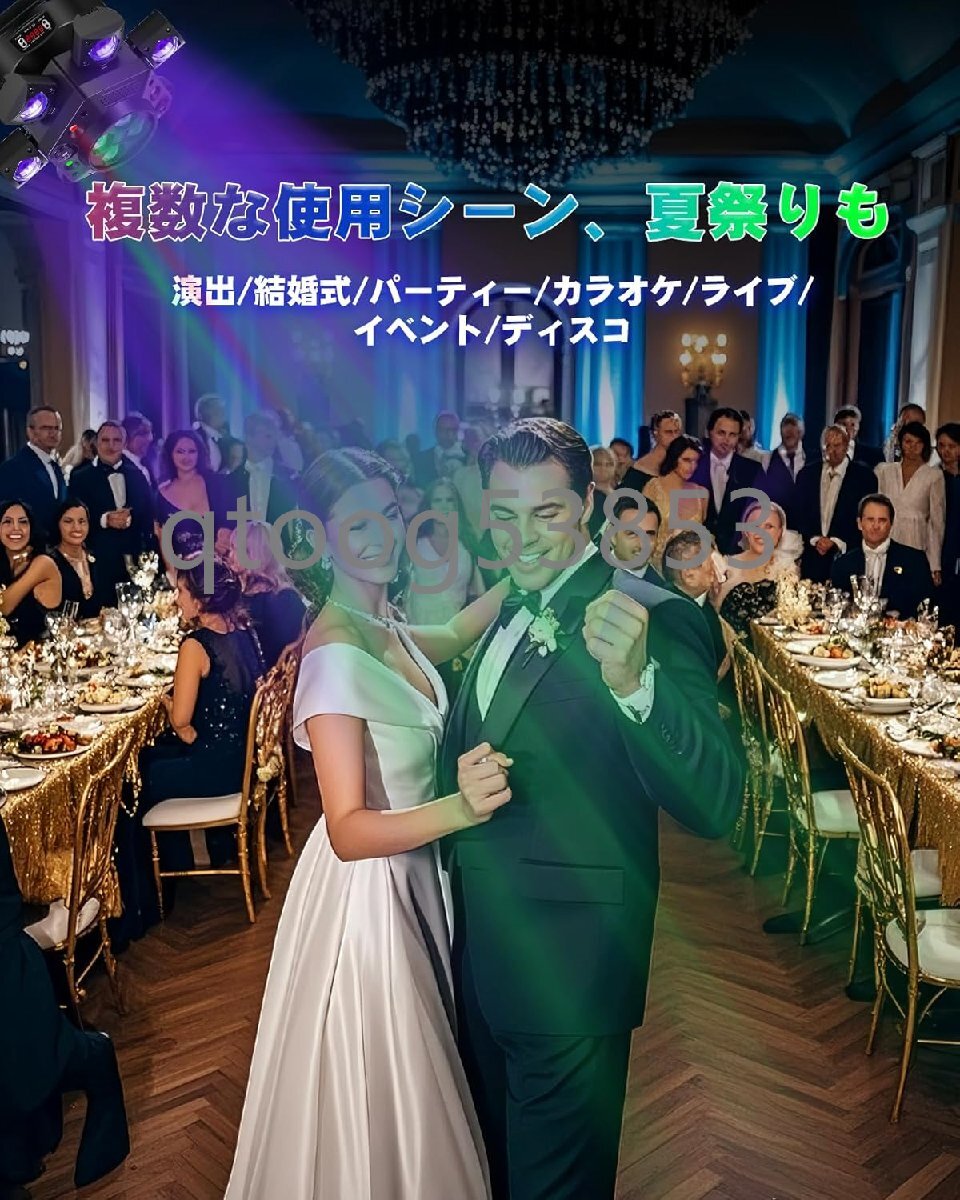 【幅広い使用範囲】演出、ライブ、パーティー、カラオケ、お祭り(文化祭、夏祭りや後夜祭)などの場合に広く使用されているステージライトです。光量十分で、多彩なエフェクトで派手な演出も可能です。ディスコやロマンチックや活発な雰囲気などの視覚効果が作られます。