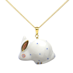| 作品名(パターン) | C-B(ヘレンド フィギュリン) (05339)兎ペンダントトップ(水色の水玉模様) ネックチェーン(40cm)付き | ||