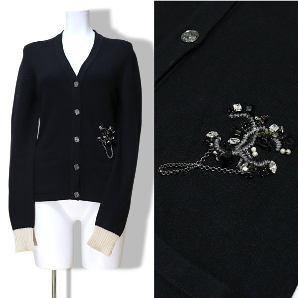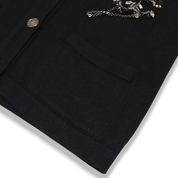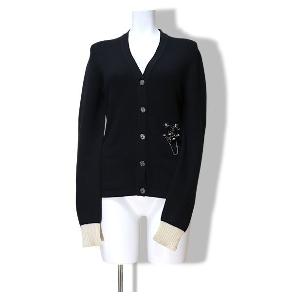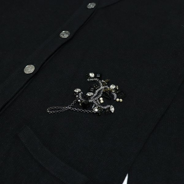 良品 CHANEL シャネル 06A P29560 ビジュー ココマーク CC ロゴ カシミヤ 100% ニット カーディガン 36 ブラック
