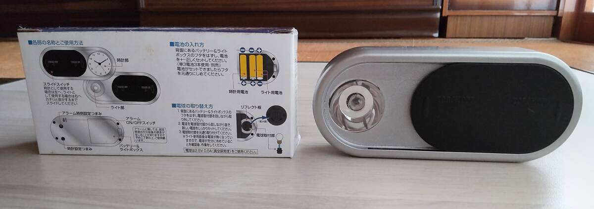 ライト付きアラームクロック(未使用)★スライドさせるだけでライトに早変わり♪★アラーム付き★単3電池使用★災害対策★軽量で持ち運び楽