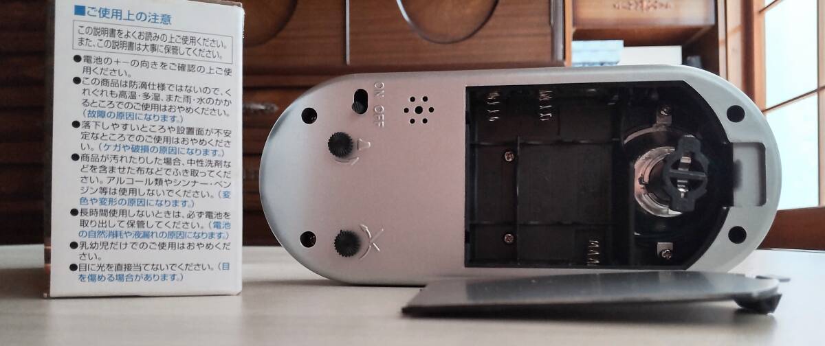 単三電池3本使用して作動します。電池は付属しませんのでご家庭のものをお使いください。